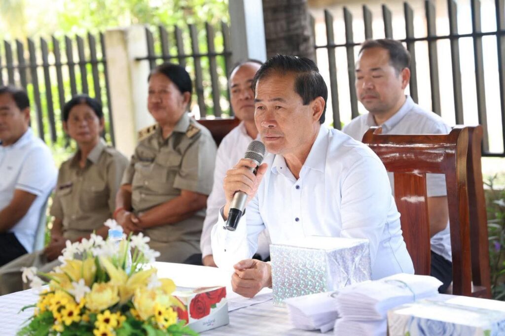 ខេត្តពោធិ៍សាត់÷លោក ខូយ រីដា អភិបាលនៃគណៈអភិបាលខេត្តពោធិ៍សាត់ តំណាងដ៏ខ្ពង់ខ្ពស់ សម្ដេចបវរធិបតី ហ៊ុន ម៉ាណែត នាយករដ្ឋមន្រ្តីនៃកម្ពុជា និងលោកជំទាវបណ្ឌិត ពេជ ចន្ទមុនី នាថ្ងៃទី១៦ ខែធ្នូ ឆ្នាំ២០២៥នេះ អញ្ជើញជួបសំណេះសំណាល ជាមួយគ្រួសារវីរៈកងទ័ពជួរមុខ ទូទាំងស្រុកក្រគរ ចំនួន៥៥គ្រួសារ ព្រមទាំងផ្តល់ជូននូវថវិកាគោលនយោបាយ និងសារលិខិតរំលែកមរណទុក្ខ របស់រាជរដ្ឋាភិបាលកម្ពុជា មកប្រគល់ជូនភរិយា នៃសពលោកវរសេនីយ៍ត្រី ស្វាយ សារិទ្ធិ មេបញ្ជាការរង កងអនុសេនាធំ នៃកងការពារព្រំដែនគោកលេខ៥០១ ដែលបានពលីជីវិតក្នុងបុព្វហេតុការពារបូរណភាពទឹកដី ក្នុងភូមិសាស្ត្រឃុំថ្មដា ស្រុកវាលវែង នាជន្មាយុ៤៥ឆ្នាំ។