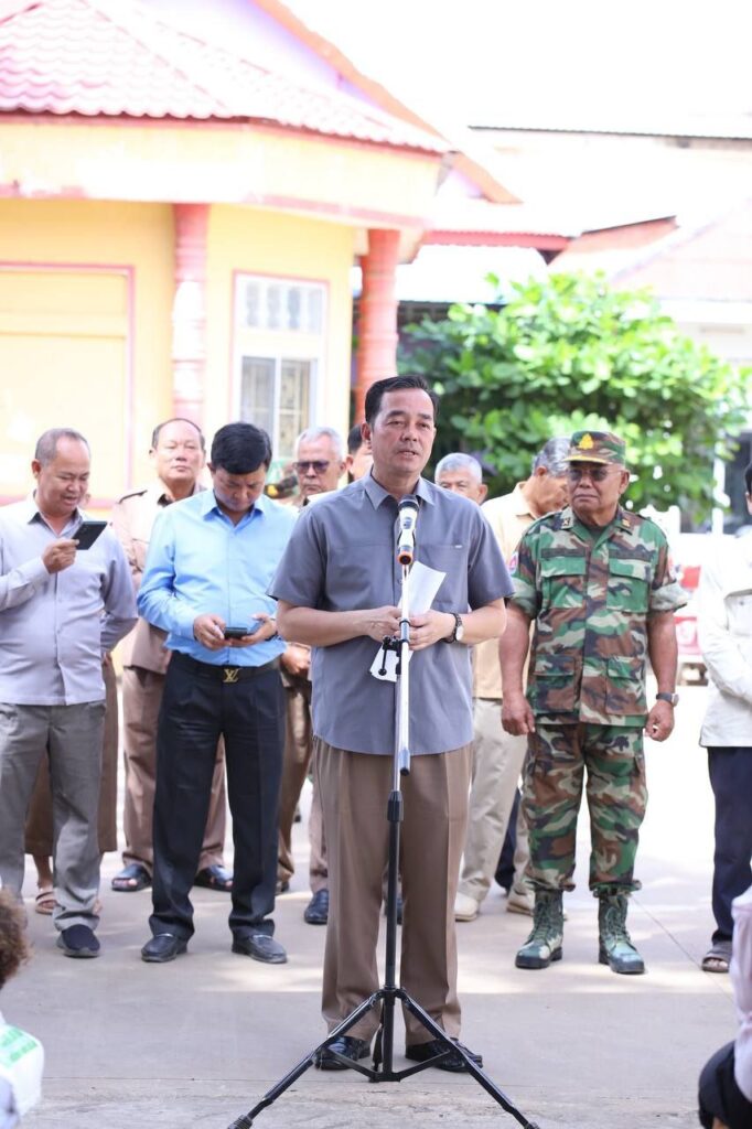 ក្នុងពេលសំណេះសំណាលនោះ លោកអភិបាលខេត្ត បានពាំនាំនូវប្រសាសន៍ផ្ដាំផ្ញើសួរសុខទុក្ខ ពីសម្តេចតេជោ-ធិបតី និងលោកសន្តិបណ្ឌិត នេត សាវឿន ជូនចំពោះ គ្រួសារវីរកងទ័ព និងបងប្អូនប្រជាពលរដ្ឋភៀសសឹក ដោយក្ដីនឹករលឹក និងអាណិតអាសូរជាទីបំផុត ក្នុងស្ថានភាពដែលតំបន់ព្រំដែន មានសភាពតានតឹងខ្លាំង បង្ខំអោយបងប្អូន ត្រូវចាកចោលលំនៅដ្ឋាន មួយរយ: ដើម្បីជំលៀសខ្លួនចេញមករកតំបន់ដែលធានាសន្តិសុខ សុវត្ថិភាព សម្រាប់ស្នាក់នៅជាបណ្តោះអាសន្នសិន។
