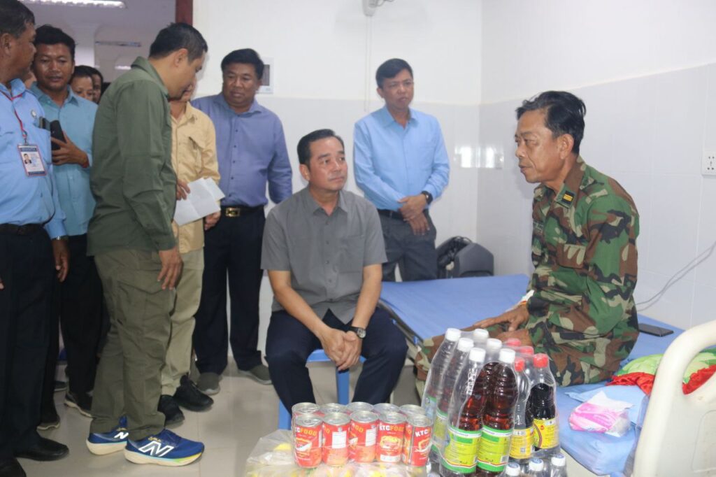 កំពង់ចាម ៖ អភិបាលខេត្តកំពង់ចាម លោក អ៊ុន ចាន់ដា និងក្រុមការងារ នៅរសៀលថ្ងៃទី ១៦ ខែធ្នូ ឆ្នាំ ២០២៥ នេះ បានអញ្ជើញសួរសុខទុក្ខ និងនាំអំណោយផ្ដល់ជូនវីរៈកងទ័ព ៣រូប កំពុងសម្រាកព្យាបាលជំងឺ ដោយពីរនាក់ ព្យាបាលនៅមន្ទីរពេទ្យបង្អែកស្រុកជើងព្រៃ និងម្នាក់ទៀត ព្យាបាលនៅផ្ទះ នៅភូមិបាខម ឃុំសំពងជ័យ ស្រុកជើងព្រៃ ។