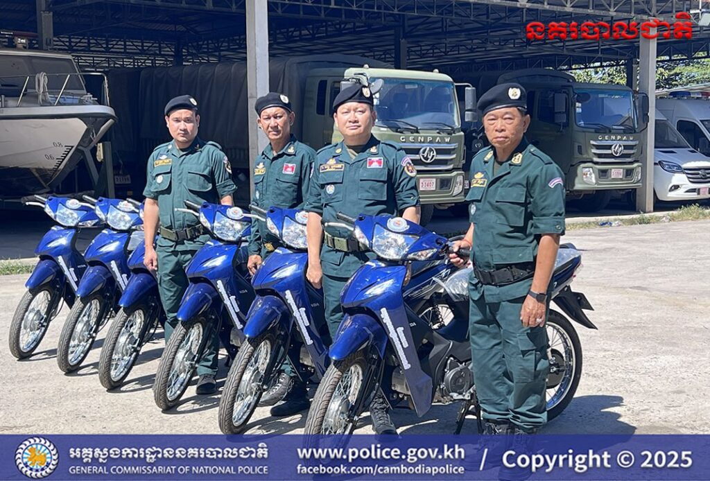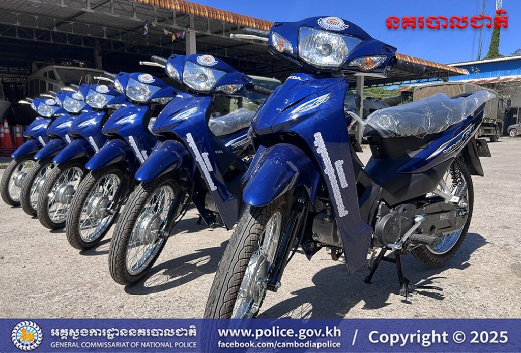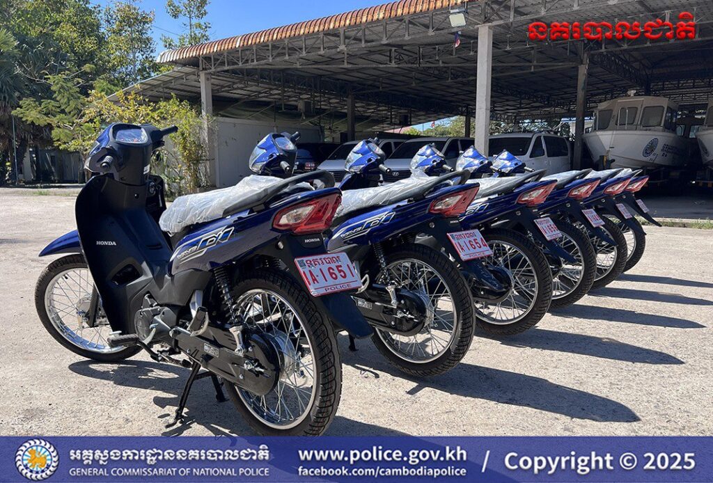 ភ្នំពេញ ៖ ដោយមើលឃើញពីស្ថានភាពជាក់ស្ដែង និងភាពចាំបាច់ ក្នុងការប្រើប្រាស់ធ្វើជា មធ្យោបាយដឹកជញ្ជូន នៅថ្ងៃទីទី១៧ ខែធ្នូ នាយឧត្តមសេនីយ៍ ស ថេត អគ្គស្នងការនគរបាលជាតិ បានឧបត្ថម្ភម៉ូតូចំនួន ១០គ្រឿង ដល់ស្នងការដ្ឋាននគរបាល ខេត្តពោធិ៍សាត់ ដើម្បីងាយស្រួលក្នុងការចល័ត ដឹកស្បៀងអាហារទៅជួរមុខ ។