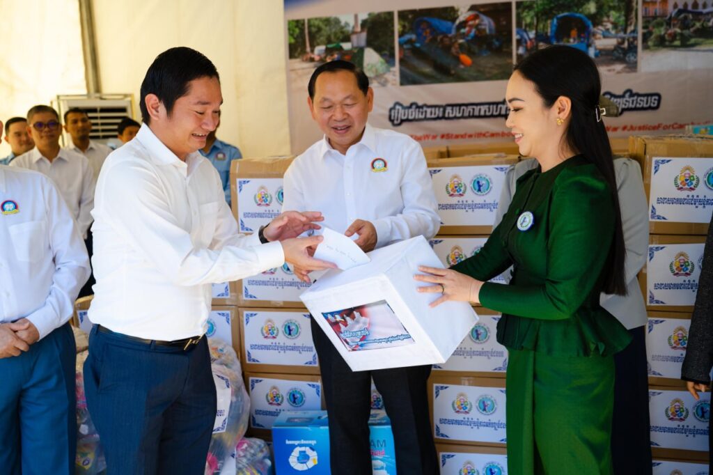 លោក ឆាយ ឫទ្ធិសែន អញ្ជើញទទួលអំណោយដែលជាការឧបត្ថម្ភរបស់ សប្បុរសជននានា ដើម្បីយកទៅឧបត្ថម្ភ គាំទ្រដល់គ្រួសារវីរកងទ័ព និងបងប្អូនប្រជាជនភៀសសឹកកម្ពុជា
