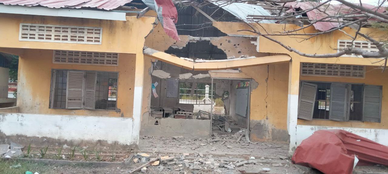 សាលាបឋមសិក្សាបន្ទាយមានឫទ្ធិ ស្រុកថ្មពួក រងប៉ះពាល់យ៉ាងធ្ងន់ធ្ងរពីស្នាដៃយោធាថៃ