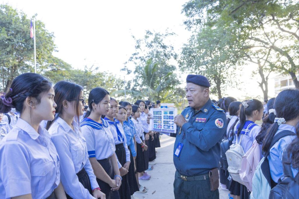 លោក ម៉េង ស្រ៊ុន ដាក់បទបញ្ជាឲ្យ កម្លាំងជំនាញកងរាជអាវុធហត្ថខេត្ត បន្តចុះផ្សព្វផ្សាយលើកកម្ពស់ការអប់រំ ដើម្បីសហគមន៍គ្មានគ្រឿងញៀន(បារីអេឡិចត្រូ និច) និងក្មេងទំនើង ព្រមទាំងលេខទូរស័ព្ទអន្តរាគមន៏សង្គ្រោះបន្ទាន់ Hotline1292 នៅសាលាវិទ្យាល័យ ២៤ កញ្ញា ក្នុងភូមិសាស្ត្រខេត្តកំពង់ស្ពឺ