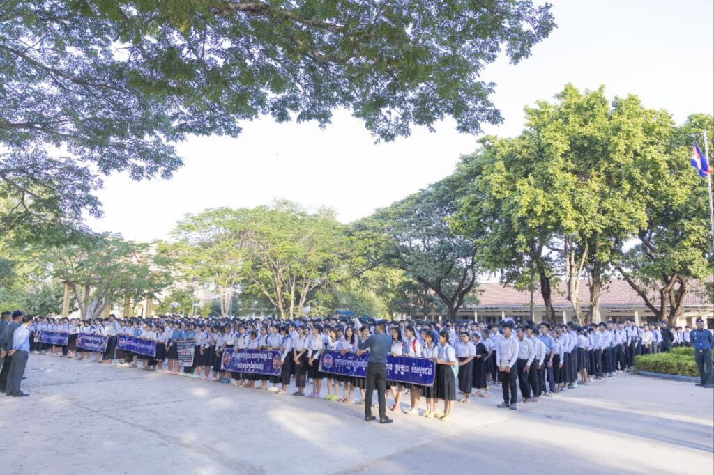 កំពង់ស្ពឺ៖ ដោយអនុវត្តតាមបទបញ្ជាយ៉ាងម៉ឺងម៉ាត់របស់ លោកឧត្តមសេនីយ៍ត្រី ម៉េង ស្រ៊ុន មេបញ្ជាការ កងរាជអាវុធហត្ថខេត្តកំពង់ស្ពឺ នាព្រឹកថ្ងៃទី១៩ ខែធ្នូ ឆ្នាំ២០២៥ វេលាម៉ោង០៧:០០នាទី លោកវរសេនីយ៍ទោ ណុល ដារ៉ា ប្រធានមន្ទីរ ស្រាវជ្រាវបង្ក្រាប និងបង្ក្រាបបទល្មើស បានដឹកនាំជំនាញ សហការរដ្ឋបាលស្រុកបសេដ្ឋ និងមានការចូលរួមពីក្រុមការងារសហភាពសហព័ន្ធយុវជនកម្ពុជាខេត្តកំពង់ស្ពឺ(ស.ស.យ.ក.កំពង់ស្ពឺ) បន្តចុះផ្សព្វផ្សាយលើកកម្ពស់ការអប់រំ ដើម្បីសហគមន៍គ្មានគ្រឿងញៀន(បារីអេឡិចត្រូ និច) និងក្មេងទំនើង ព្រមទាំងលេខទូរស័ព្ទអន្តរាគមន៏សង្គ្រោះបន្ទាន់ HotLine1292 ធ្វើឡើងនៅសាលាវិទ្យាល័យ ២៤កញ្ញា ស្ថិតនៅភូមិត្រពាំងកក់ ឃុំពោធិអង្ក្រង ស្រុកបសេដ្ឋ ខេត្តកំពង់ស្ពឺ។ ដោយមានការចូលរួមពី រដ្ឋបាលស្រុកបសេដ្ឋ គណៈគ្រប់គ្រងសាលា លោកគ្រូ អ្នកគ្រូ ព្រមទាំងសិស្សានុសិស្សចូលរួមចំនួន១៤៦៨នាក់(ស្រីចំនួន ៧៤២នាក់) ចូលរួមផងដែរ។