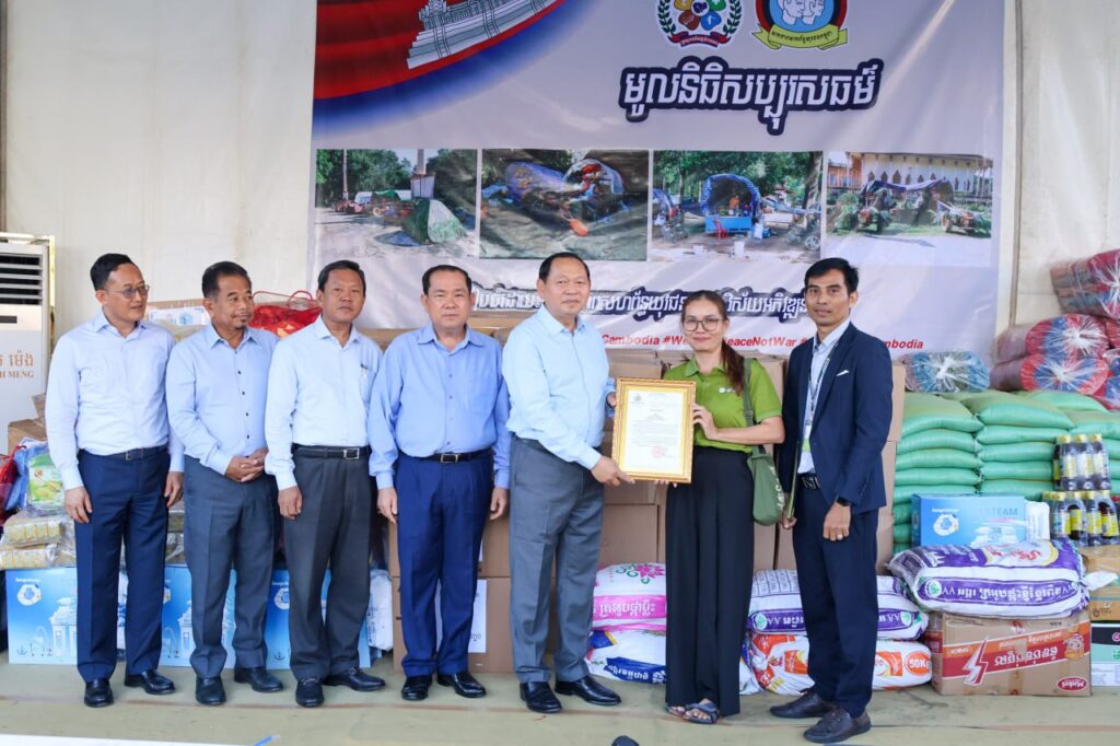 ភ្នំពេញ៖ លោក ឆាយ ឫទ្ធិសែន រដ្ឋមន្ដ្រីក្រសួងអភិវឌ្ឍន៍ជនបទ បានអញ្ជើញទទួលអំណោយដែលជាការឧបត្ថម្ភរបស់អង្គការដៃគូរចំនួនអង្គការ ចូលរួមក្នុងមូលនិធិសប្បុរសធម៌ សម្រាប់យកទៅឧបត្ថម្ភគាំទ្រដល់គ្រួសារវីរកងទ័ពជួមុខ និងប្រជាជនភៀសសឹកកម្ពុជាដែលបានជម្លៀសខ្លួនពីលំនៅដ្ឋាន ហើយកំពុងស្នាក់នៅបណ្ដោះអាសន្ននៅតាមទីតាំងសុវត្ថិភាពនានា ក្នុងអំឡុងពេលនៃការឈ្លានពានរបស់ទាហានឈ្លានពានសៀម មកលើដែនអធិបតេយ្យភាព និងបូរណភាពដែនដីនៃព្រះរាជាណាចក្រកម្ពុជា។ អង្គការដៃគូរទាំង ៣នោះរួមមាន៖