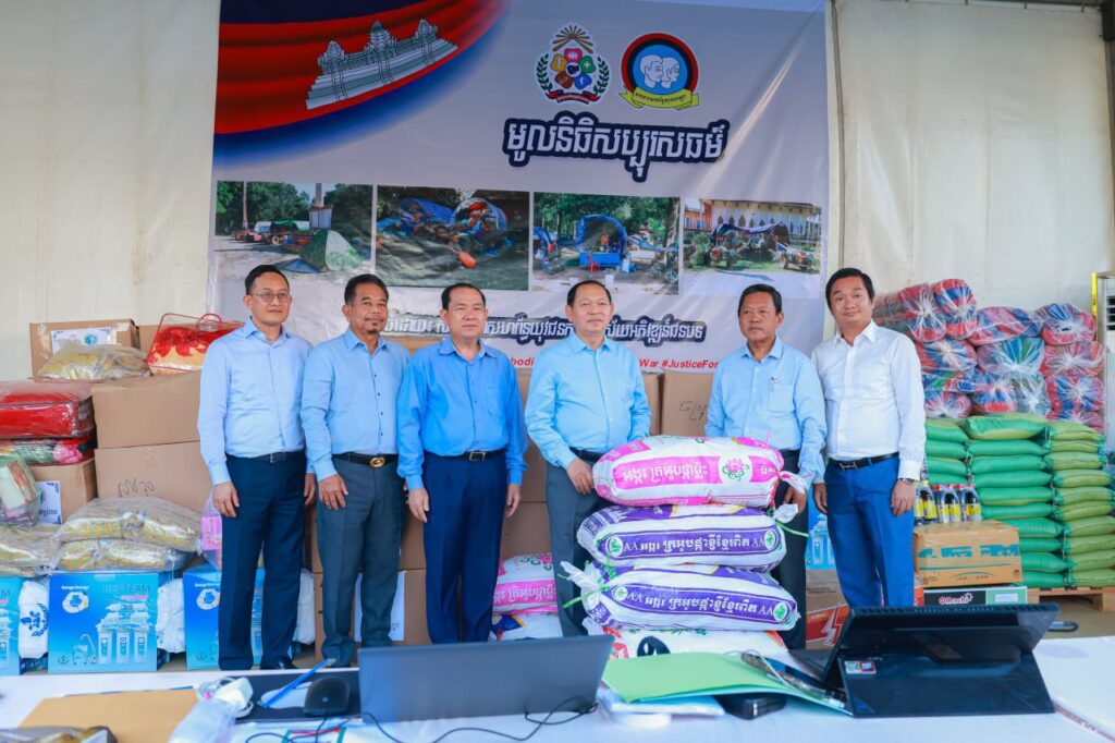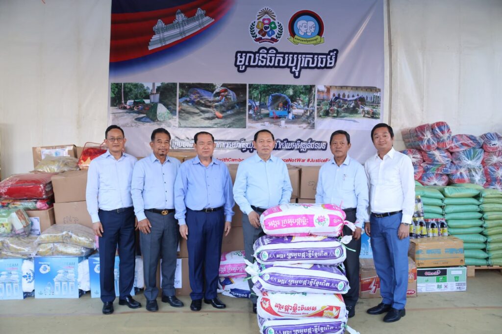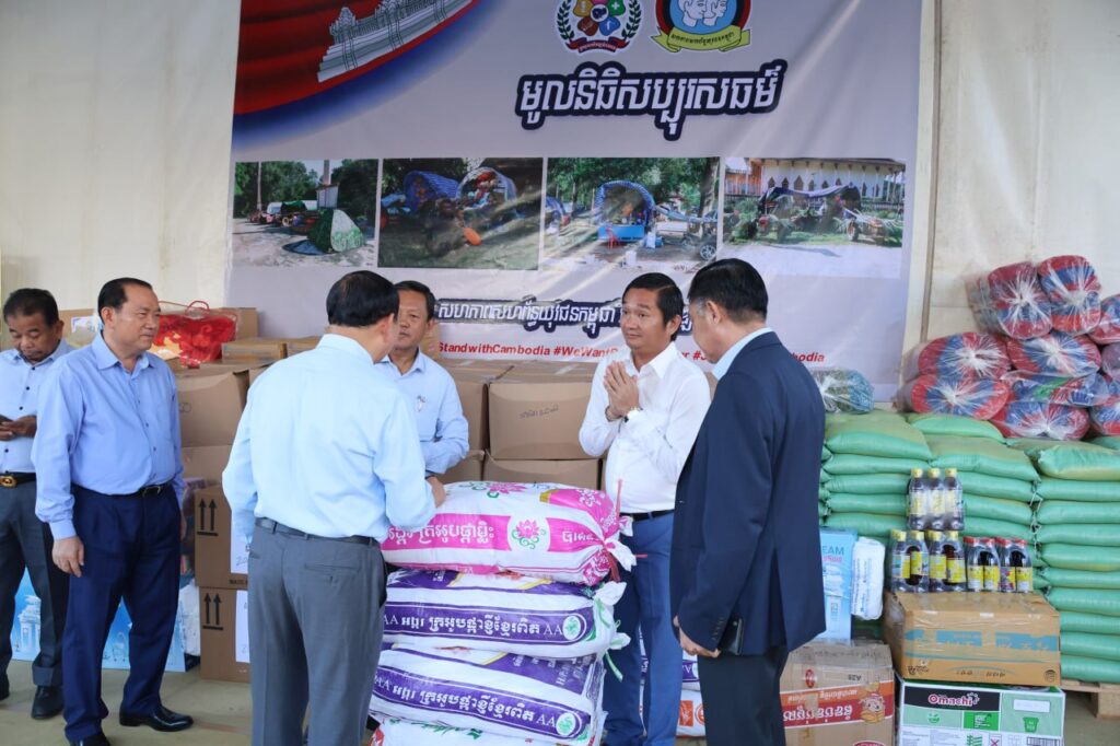 សម្ភារទាំងនេះត្រូវប្រគល់ជូន លោក សៅ ជីវ័ន្ដ រដ្ឋលេខាការ និងលោក ពិត ករុណា អនុរដ្ឋលេខាធិការ ក្រសួងអភិវឌ្ឍន៍ជន ដើម្បីយកទៅចែកជូនដល់គ្រួសារវីរកងទ័ពជួរមុខ និងជនភៀសសឹក កំពុងស្នាក់នៅបណ្ដោះអាសន្ននៅតាមទីតាំងសុវត្ថិភាព ក្នុងខេត្តបាត់ដំបង នៅអំឡុងពេលនៃការឈ្លានពានរបស់ទាហានឈ្លានពានសៀម មកលើដែនអធិបតេយ្យភាព និងបូរណភាពដែនដីនៃព្រះរាជាណាចក្រកម្ពុជា។