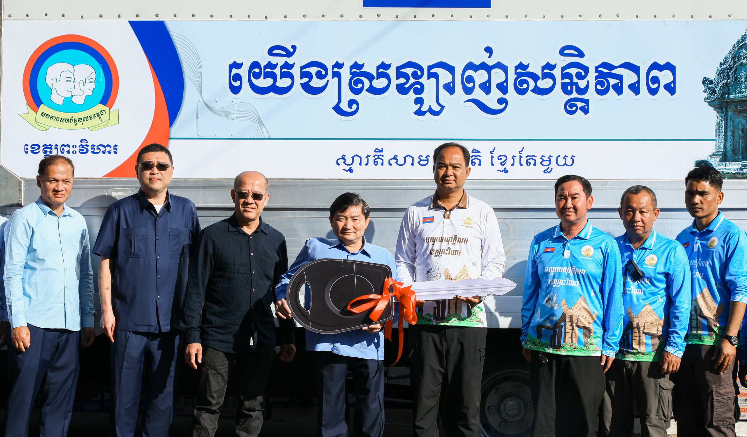 ខេត្តព្រះវិហារ៖ នាព្រឹកថ្ងៃទី២០ ខែធ្នូ ឆ្នាំ២០២៥នេះ លោក ហេង សួរ រដ្ឋមន្ត្រីក្រសួងការងារ និងបណ្ដុះបណ្ដាលវិជ្ជាជីវៈ អមដោយថ្នាក់ដឹកនាំក្រសួង តំណាងនិយោជក និងក្រុមការងារ បាននាំយកអំណោយរបស់ថ្នាក់ដឹកនាំក្រសួង មន្រ្តីរាជការ សប្បុរសជន ម្ចាស់រោងចក្រ សហគ្រាស ក្រុមហ៊ុន ថ្នាក់ដឹកនាំសហជីព បងប្អូនកម្មករនិយោជិត ប្រគល់ជូនលោក គីម រិទ្ធី អភិបាលនៃគណៈអភិបាលខេត្តព្រះវិហារ។
