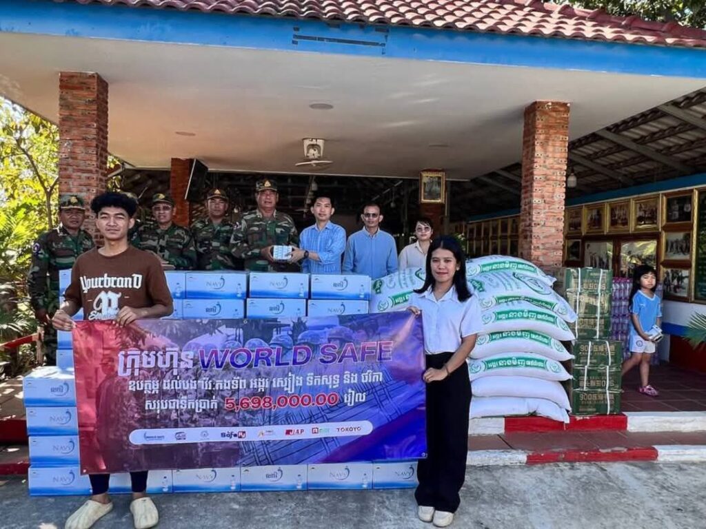 ភ្នំពេញ ៖ ឧត្តមសេនីយ៍ទោ ហ៊ុល សំអុន មេបញ្ជាការកងពលតូចដឹកជញ្ជូនលេខ៩៩ បានថ្លែងអំណរគុណយ៉ាងជ្រាលជ្រៅចំពោះ ក្រុមហ៊ុន World Safe ដែលបានឧបត្ថម្ភអង្ករ ស្បៀង ទឹកសុទ្ធ និងថវិកា សរុបជាទឹកប្រាក់ចំនួន៥.៦៩៨.០០០៛ (ប្រាំលាន ហុកសិនប្រាំបួនម៉ឺន ប្រាំបីពាន់រៀល) និងថវិកាផ្ទាល់ចំនួន២.០០០.០០០៛ (ពីរលានរៀល) ជូនដល់កងពលសម្រាប់ប្រើប្រាស់ ជាប្រយោជន៍ជាក់ស្តែងក្នុងអង្គភាព ជាពិសេសម្រាប់នាំយកបន្ត ទៅចែកជូនដល់បងប្អូនវីរៈកងទ័ពជួរមុខ ព្រមទាំងជនភៀសសឹក ដែលកំពុងតែត្រូវការជំនួយជាបន្ទាន់ ដោយសារតែការឈ្លានពានពីកងទ័ពសៀម នៅតាមបន្ទាត់ព្រំដែនសមរភូមិមុខ កម្ពុជា-ថៃ។