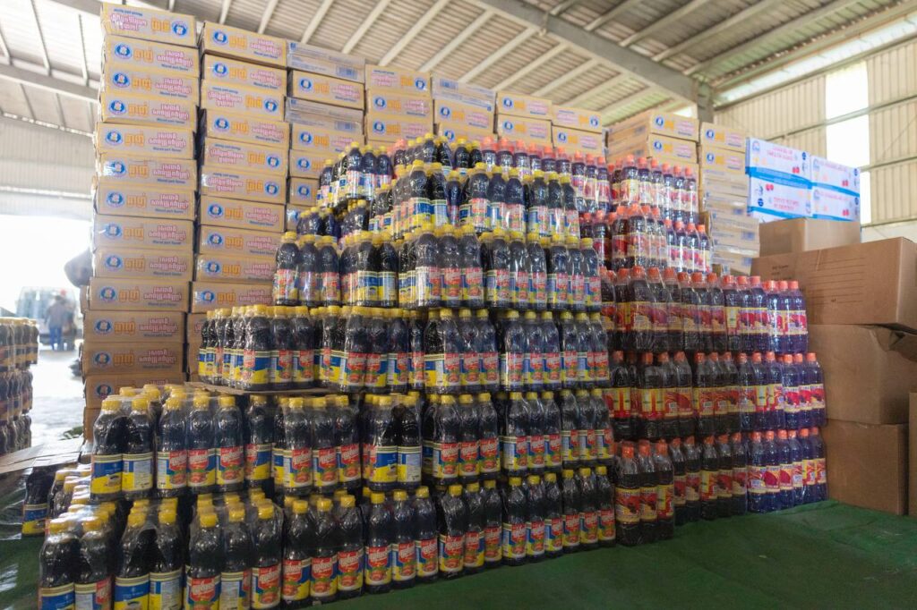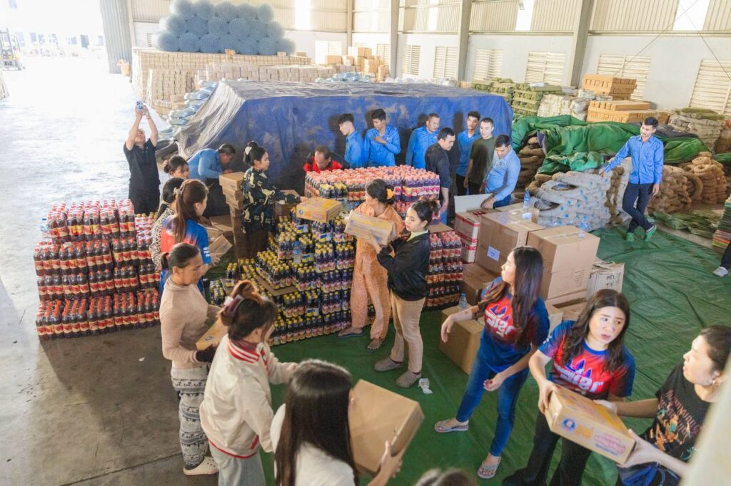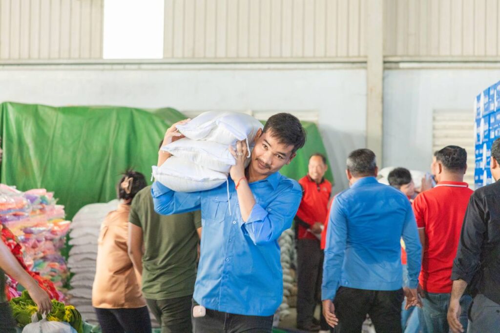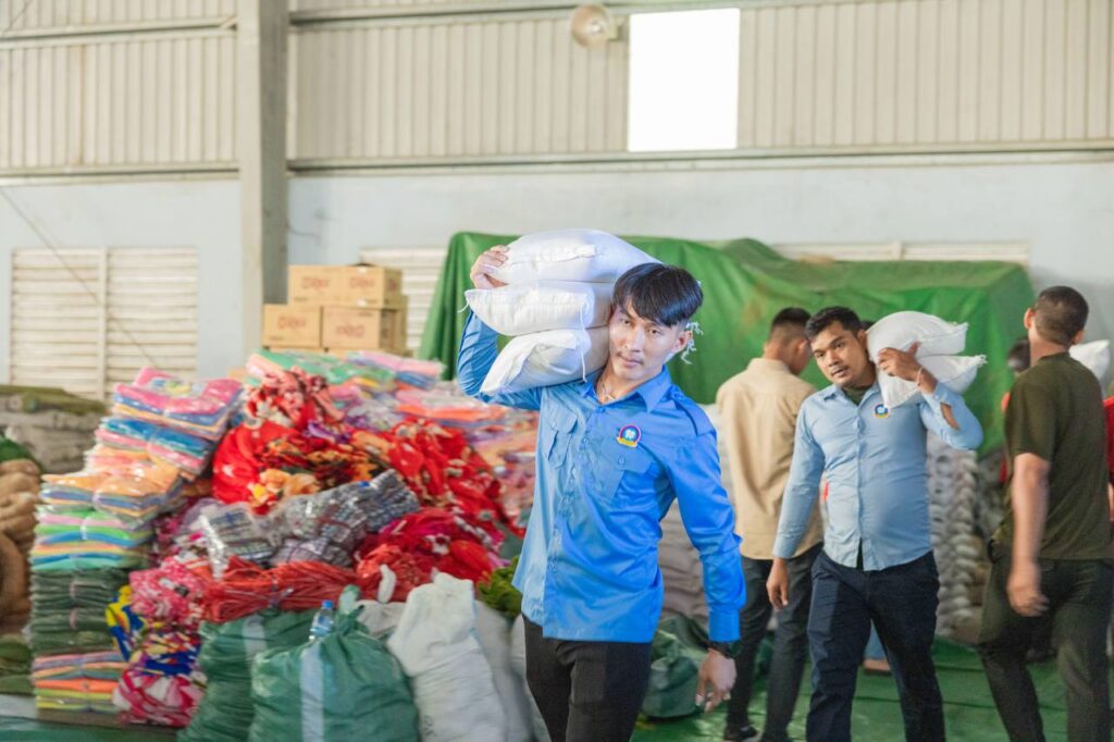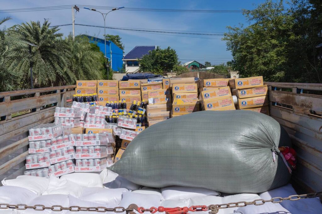 សម្ភារៈទាំងអស់រួមមាន៖ អង្ករ ៥០០បាវ(ស្នើរនិង៥តោន),មីខ្លាឃ្មុំ ៥០០កេះ,ទឹកសុទ្ធ ៥០០កេះ,ភេជ្ជៈប៉ូវកំលាំង ៥០០កេះ,ភួយចំនួន ៣០០ភួយ,សាច់ក្រកឆៅចំនួន ២០០គីឡូក្រាម,សាច់ក្រកឆ្អឹចំនួន ១០០គីឡូ,ទឹកត្រី ១០០យួរ,ទឹកសុីអុីវ ១០០យួរ,ត្រី ខ ៥០កេះ,សាច់ជ្រូកផាត់ ៥០គីឡូ,សាច់ជ្រូករំលីង ៥កេះ,កាពិផាវ ៥០១កំប៉ុងនិងគោ ២ក្បាល ( ដែលសរុបជាថវិការចំនួន ១៦.១៧៤ ដុល្លាអាមេរិច)ផងដែរ។