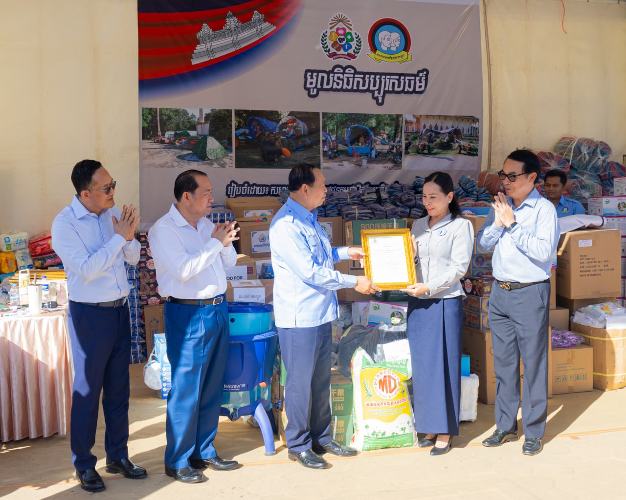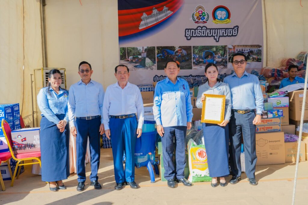 អំណោយដែលបានជួយឧបត្ថម្ភនោះ រួមមាន៖ ១. ទឹកបរិសុទ្ធម៉ាក (EM) ចំនួន ១០០កេស, ២. អង្ករចំនួន ២ ០០០គីឡូក្រាម និង ៣. ត្រីខ ១៤កេស ស្មើនឹង ១០០៨កំប៉ុង សម្រាប់យកទៅឧបត្ថម្ភគាំទ្រដល់គ្រួសារវីរកងទ័ពជួមុខ និងប្រជាជនភៀសសឹកកម្ពុជាដែលបានជម្លៀសខ្លួនពីលំនៅដ្ឋាន ហើយកំពុងស្នាក់នៅបណ្ដោះអាសន្ននៅតាមទីតាំងសុវត្ថិភាពនានា ក្នុងអំឡុងពេលនៃការឈ្លានពានរបស់ទាហានឈ្លានពានសៀម មកលើដែនអធិបតេយ្យភាព និងបូរណភាពដែនដីនៃព្រះរាជាណាចក្រកម្ពុជា។