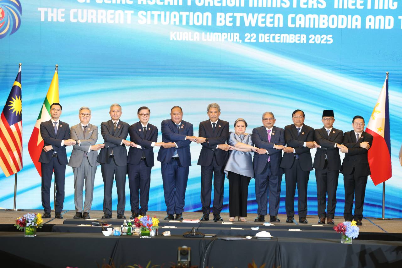 ភ្នំពេញ ៖ ឧបនាយករដ្ឋមន្ត្រី ប្រាក់ សុខុន រដ្ឋមន្ត្រីការបរទេស និង សហប្រតិបត្តិការអន្តរជាតិ បានអញ្ជើញចូលរួម កិច្ចប្រជុំពិសេស រដ្ឋមន្ត្រីការបរទេសអាស៊ាន ស្តីពីស្ថានភាព បច្ចុប្បន្នរវាងកម្ពុជា និងថៃ នៅទីក្រុងគូឡាឡាំពួ ប្រទេសម៉ាឡេស៊ី នៅថ្ងៃទី២២ ខែធ្នូ ឆ្នាំ២០២៥ ៕