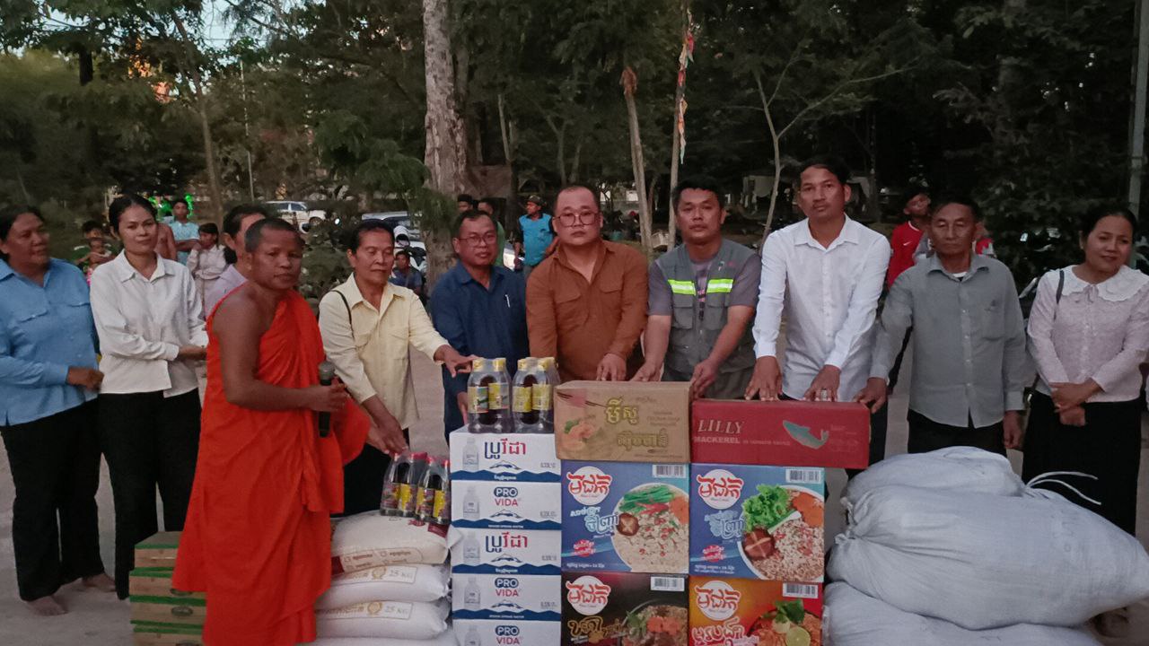 និងជាពិសេសបាននាំយកគ្រឿងឧបភោគបរិភោគមួយចំនួនប្រគល់ជូនអាជ្ញាធរដែលនៅទីតាំងមណ្ឌលជនភៀសសឹកមួយចំនួនទៀតផងដែរ មានដូចជា អង្ករ៥០ គីឡូចំនួន ២បេ ត្រីខកំប៉ុងចំនួន ១០យួរ ទឹកស៊ីអ៊ីវចំនួន ២យួរ ទឹកត្រីចំនួន២យួរ មីកំប៉ុងចំនួន៤ កេះធំ ទឹកសុទ្ធចំនួន៤ កេះ។