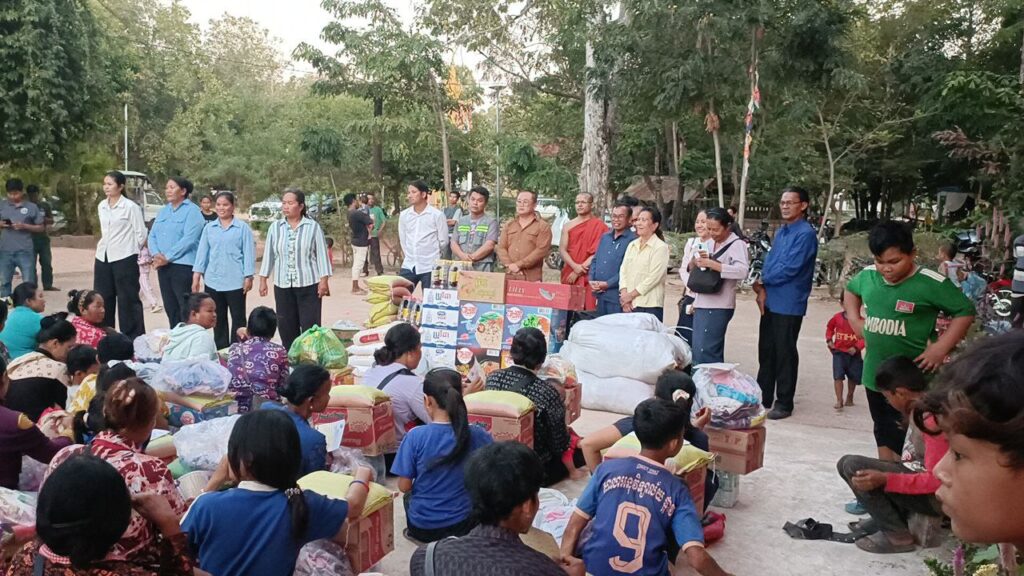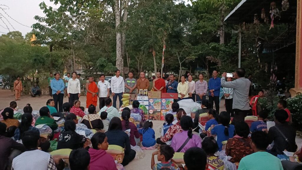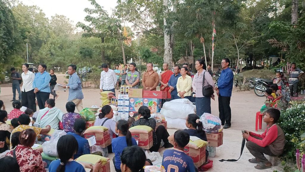 ខេត្តសៀមរាប៖ នៅល្ងាចថ្ងៃទី២២ ខែធ្នូ ឆ្នាំ២០២៥ ក្រុមការងារសាលាដូងជំនួសមុខជូន លោកអ៊ុកវ៉ាន់ដេ នឹងលោកអ៊ុយសុធុនភ្នាក់ងារដើមអម្ពិលប្រចាំខេត្តសៀមរាប បាននាំយកចំនួយរួមមាន ទឹកសុទ្ធ អង្ករ ត្រីខ ទឹកស៊ីអ៊ីវ មី ចំនួន១២៥ គ្រួសារ យកទៅចែកជូនបងប្អូនជនភាសិតដែលស្ថិតនៅ វត្តប្រាសាទមុនីសោមសាសាន់ ភូមិ ជ្រៃខាងជេជេីង ឃុំកៀនសង្កែ ស្រុកសូទ្រនិគម, ខេត្តសៀមរាប។
