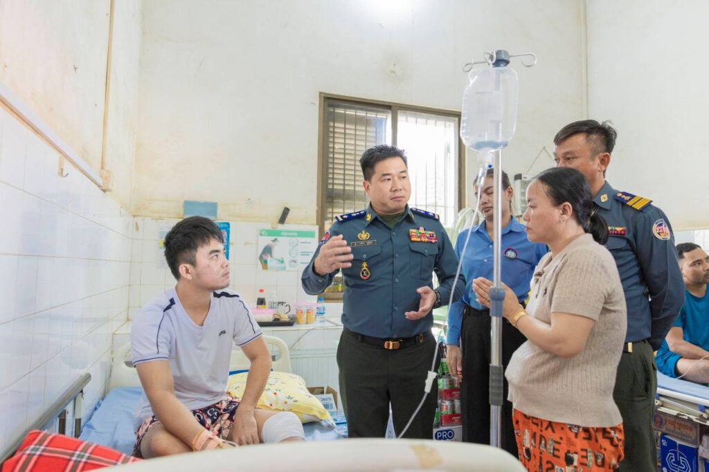 លោកឧត្តមសេនីយ៍ត្រី ម៉េង ស្រ៊ុន ចុះសួរសុខទុក្ខបងប្អូនវីរៈកងទ័ពជួរមុខ ដែលត្រូវរបួសអំបែងគ្រាប់ និងផ្សែងពុល ពេលប្រយុទ្ធនៅសមរភូមិមុខ ពេលនេះកំពុងសម្រាកព្យាបាលនៅមន្ទីរពេទ្យបង្អែក ក្រុងឧដុង្គម៉ែជ័យ ខេត្តកំពង់ស្ពឺ…