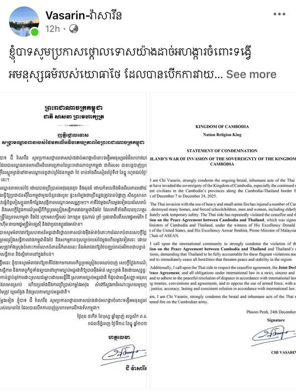 ប្រជាពលរដ្ឋកម្ពុជា ក៏បានអំពាវនាវឱ្យភាគីថៃងាកមកគោរពកិច្ចព្រមព្រៀងបទឈប់បាញ់ សេចក្ដីថ្លែងការណ៍ រួមស្តីពីកិច្ចព្រមព្រៀងសន្តិភាព និងកាតព្វកិច្ចទាំងឡាយនៅក្រោមច្បាប់អន្តរជាតិឱ្យបានម៉ឺងម៉ាត់ ស្មោះត្រង់ និង ដោយសុច្ឆន្ទៈពិតប្រាកដ ព្រមទាំងប្រកាន់ខ្ជាប់នូវការដោះស្រាយជម្លោះដោយសន្តិវិធី ស្របតាមច្បាប់អន្តរជាតិ ក៏ដូចជាសន្ធិសញ្ញា អនុសញ្ញា និងកិច្ចព្រមព្រៀងដែលមានស្រាប់ ហើយប្រឆាំងនឹងការប្រើប្រាស់កម្លាំងអាវុធ សំដៅស្វែងរកដំណោះស្រាយមួយប្រកបដោយយុត្តិធម៌ ត្រឹមត្រូវ យូរអង្វែង និងស្របតាមច្បាប់អន្តរជាតិ៕