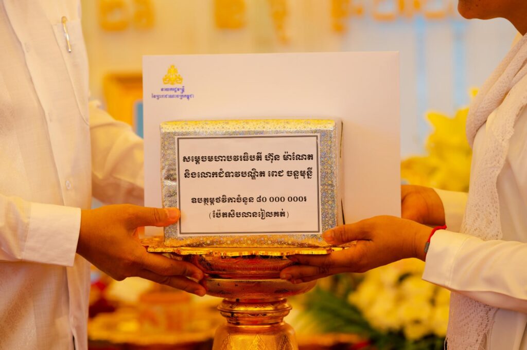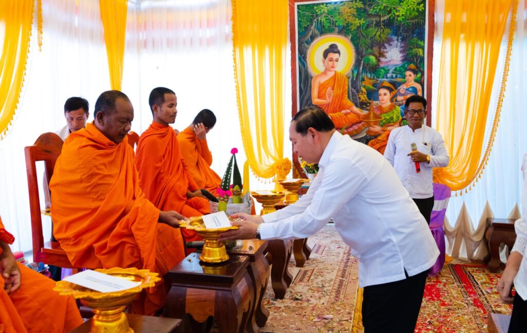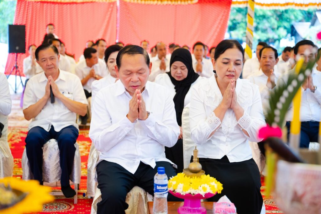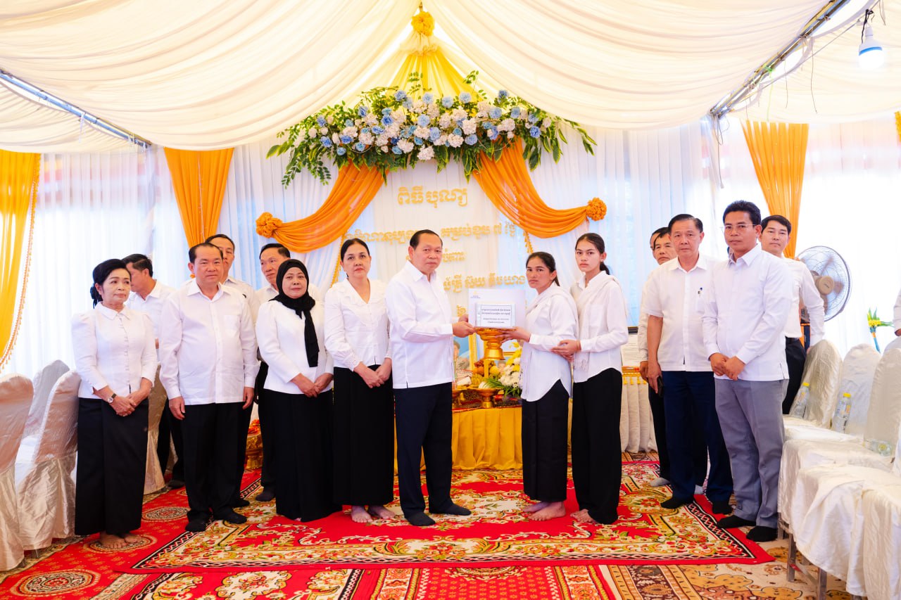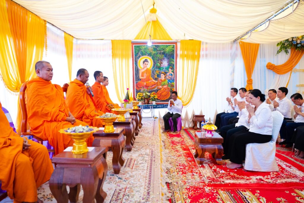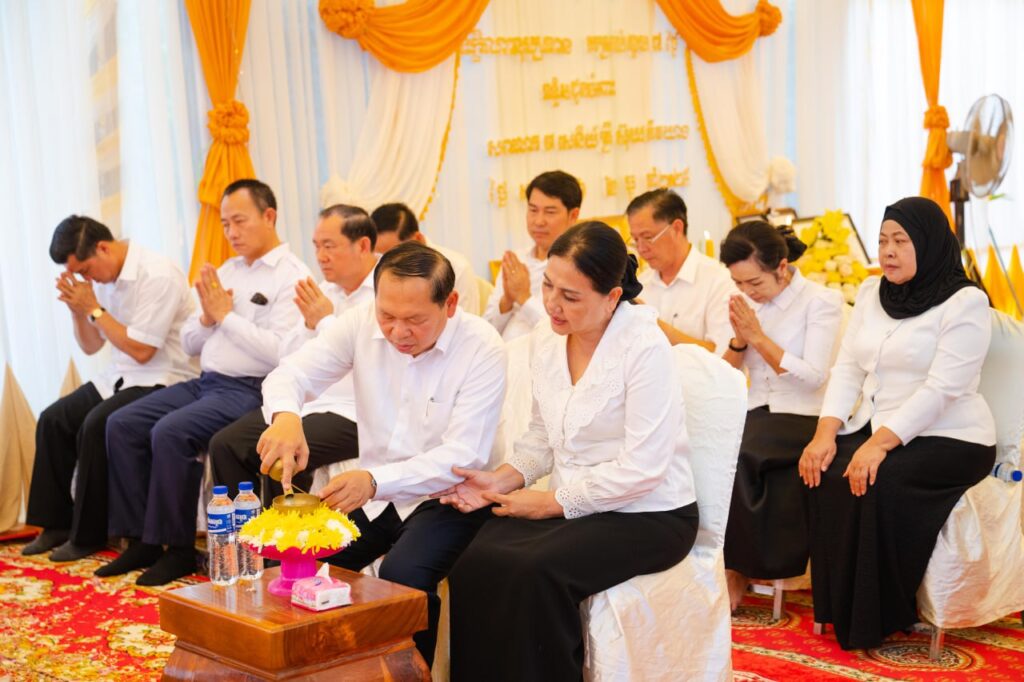 បន្ទាប់មក លោករដ្ឋមន្ដ្រី និងលោកជំទាវ ព្រមទាំងគណៈប្រតិភូ បានអញ្ជើញធ្វើបទនមស្សការព្រះរតនត្រ័យ សមាទានសីល ព្រមទាំងបានវេរទេយ្យទានប្រគេនព្រះសង្ឃ ដើម្បីឧទ្ទិសកុសលផលបុណ្យជូនដល់ដួងវិញ្ញាណក្ខន្ធសព។