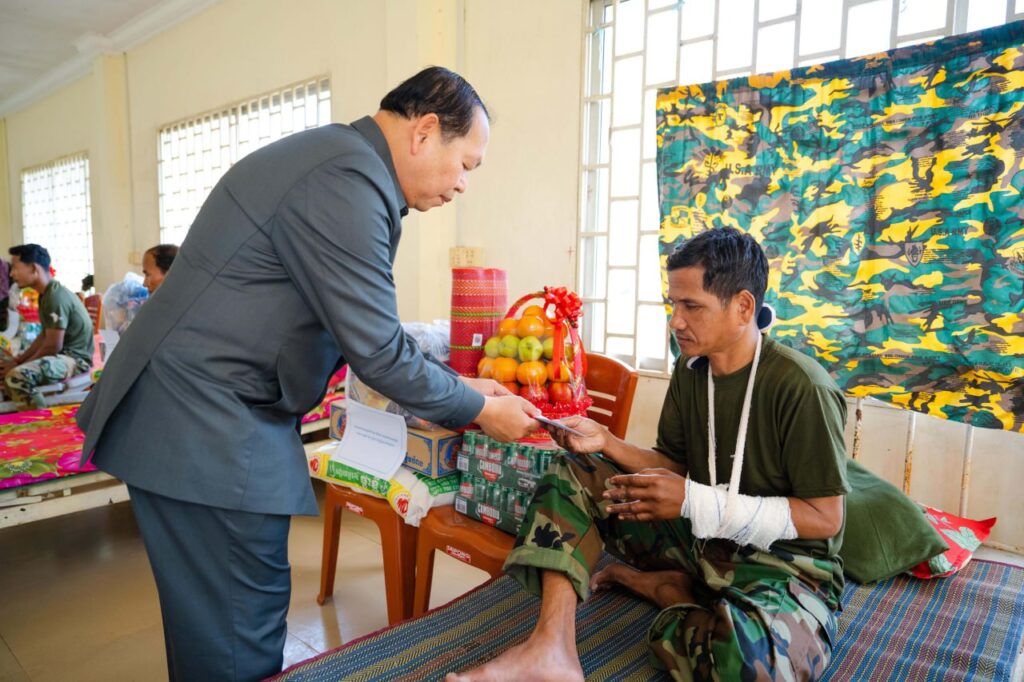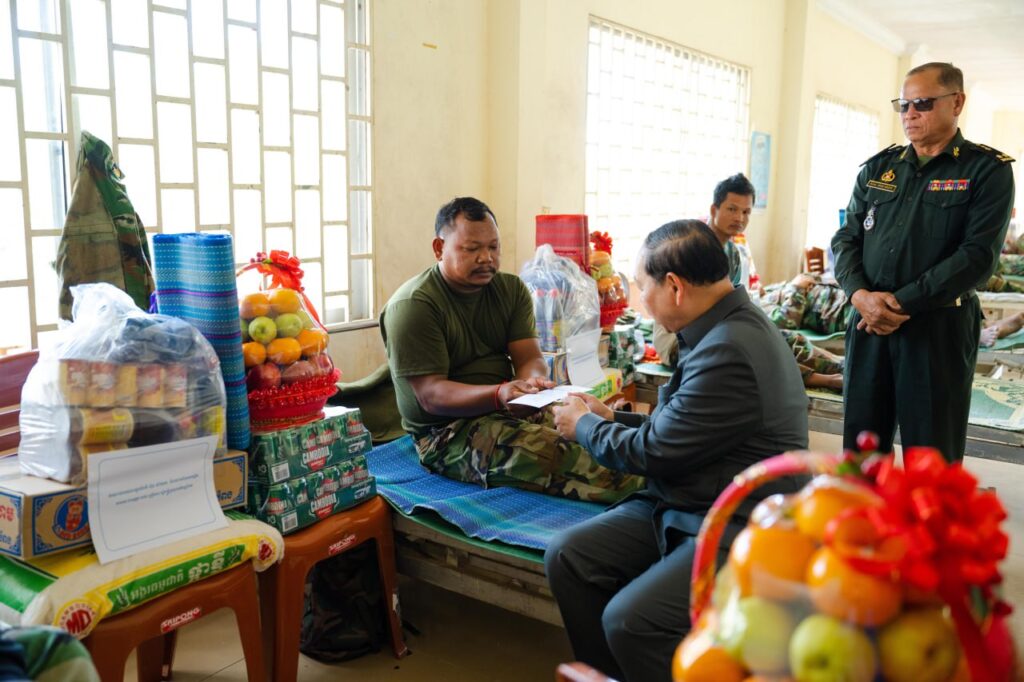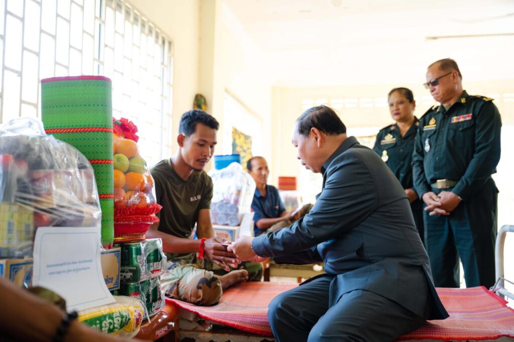 ជាមួយគ្នានោះ លោក ឆាយ ឫទ្ធិសែនបាននាំយកអំណោយដ៏ថ្លៃថ្លារបស់ សម្ដេចធិបតី និងលោកជំទាវបណ្ឌិត រួមមានសម្ភារប្រើប្រាស់ គ្រឿងឧបភោគបរិភោគ និងថវិកាមួយចំនួន ជូនដល់វីរកងទ័ពរងរបួសទាំង ៩រូប ព្រមទាំងឧបត្ថម្ភគ្រូពេទ្យប្រចាំការចំនួន ៤នាក់ និងសម្រាប់មន្ទីរពេទ្យផងដែរ។