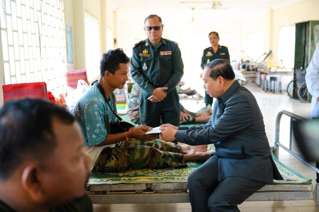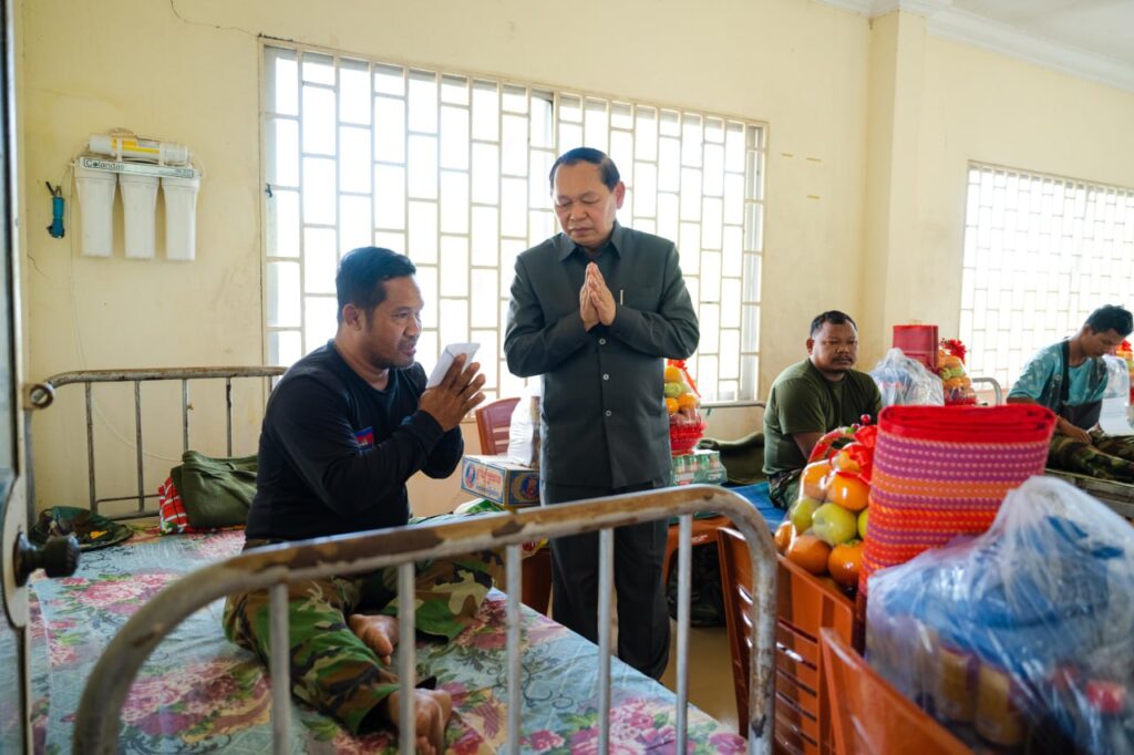កំពង់ឆ្នាំង ៖ នាព្រឹកថ្ងៃទី២៦ ខែធ្នូ ឆ្នាំ២០២៥ លោក ឆាយ ឫទ្ធិសែន រដ្ឋមន្ត្រីក្រសួង អភិវឌ្ឍន៍ជនបទ និងជាអនុប្រធានទី១ ក្រុមការងារចុះមូលដ្ឋាន ខេត្តកំពង់ឆ្នាំង និងជាប្រធានក្រុមការងារចុះមូលដ្ឋាន ស្រុកសាមគ្គីមានជ័យ និងស្រុកទឹកផុស ព្រមទាំងក្នុងនាមជាអនុប្រធាន ក្រុមការងាររាជរដ្ឋាភិបាល ចុះមូលដ្ឋានខេត្តកំពង់ឆ្នាំង បានអញ្ជើញរួមដំណើរដោយ លោកអនុប្រធានក្រុមការងារថ្នាក់កណ្តាលចុះមូលដ្ឋានស្រុកទឹកផុស, ឯកឧត្តមប្រធាន អនុប្រធានក្រុមការងារថ្នាក់កណ្តាល ចុះមូលដ្ឋានឃុំ នៃស្រុកទឹកផុស បានអញ្ជើញចុះសួរសុខទុក្ខវីរកងទ័ព ចំនួន ៩រូប ដែលកំពុងសម្រាកព្យាបាលរបួស និងត្រូវផ្សែងពុលបង្កឡើងដោយកងទ័ពឈ្លានពានថៃ បច្ចុប្បន្នកំពុងសម្រាកព្យាបាលនៅក្នុងមន្ទីរពេទ្យ ក្នុងខេត្តកំពង់ឆ្នាំង។