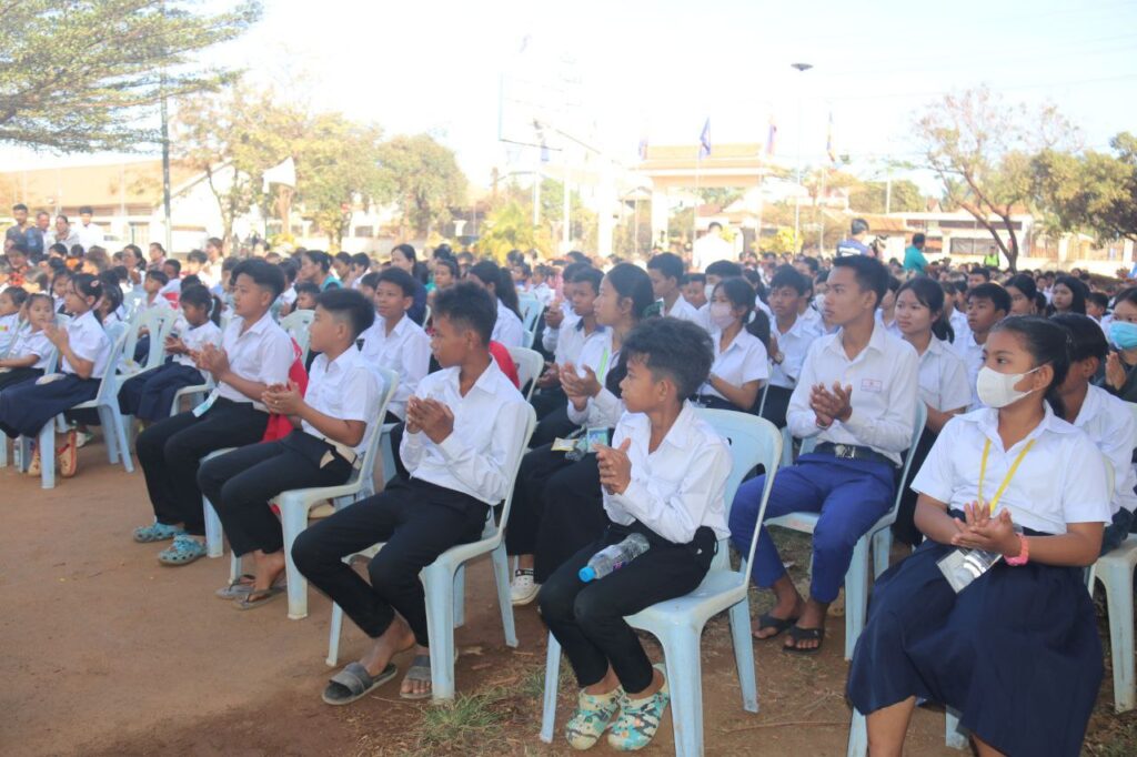 លោកអភិបាលខេត្ត បានយកឱកាសនោះពាំនាំនូវការផ្ដាំផ្ញើសួរសុខទុក្ខពីសំណាក់សម្ដេចនាយករដ្ឋមន្ត្រី ជូនចំពោះក្មួយៗ សិស្សានុសិស្ស និងបងប្អូនអាណាព្យាបាលដែលបានភៀសសឹកពីតំបន់ដែលមានបញ្ហា ហើយបានមកដល់ទឹកដីក្នុងខេត្តកំពង់ចាមនេះ។