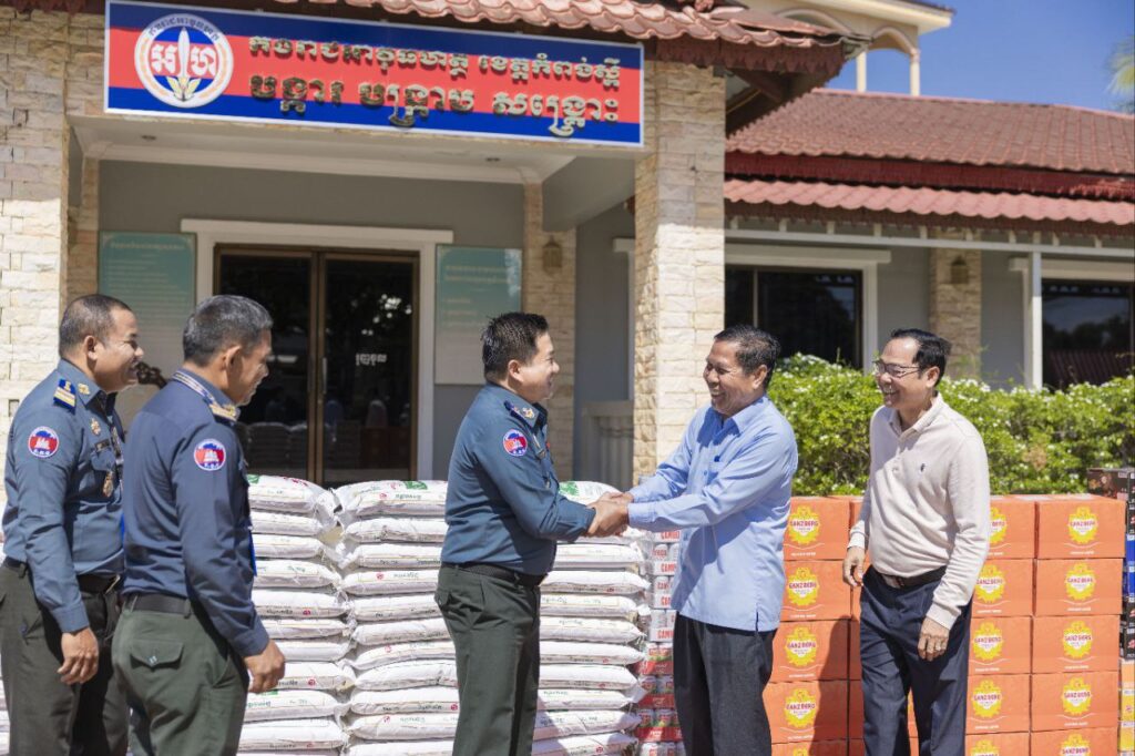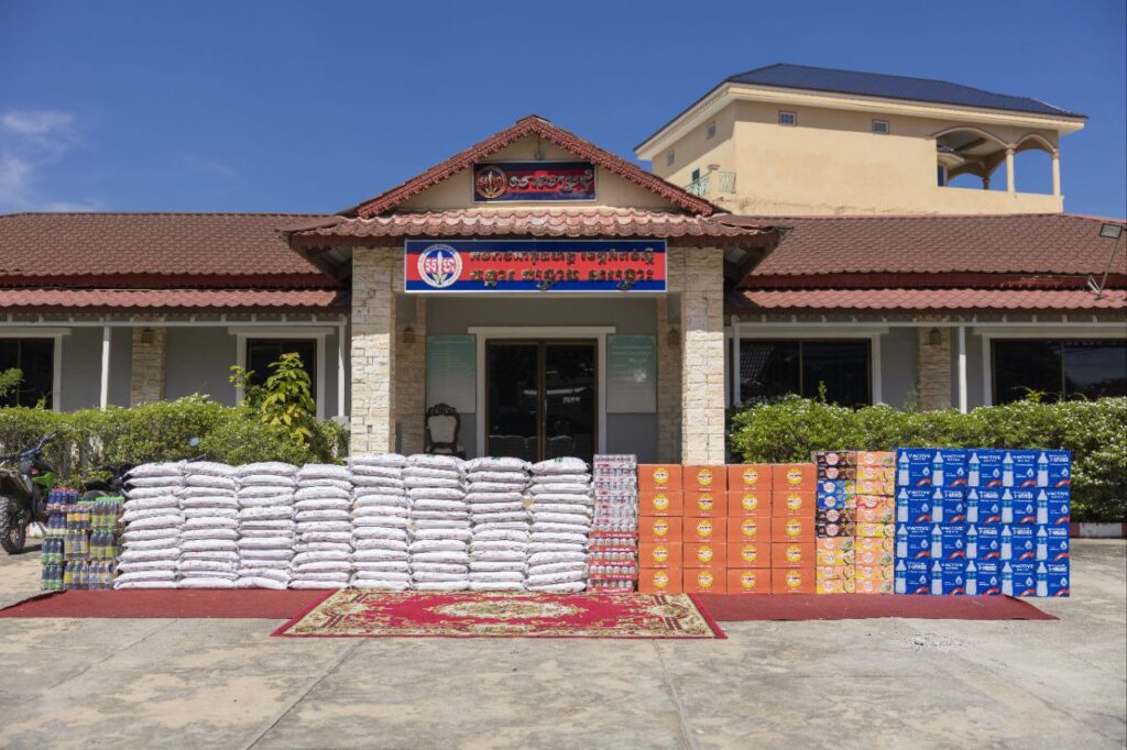 សម្ភារៈទាំងនោះរួមមាន៖អង្កចំនួន ១តោន,ទឹកសុទ្ធចំនួន ៤០កេស,មីចំនួន ២០កេស,ទឹកក្រូច-ទឹកផ្លែឈើចំនួន ១០កេស,ទឹកត្រីចំនួន១០យួរ និងទឹកស៊ីអ៊ីវចំនួន ១០យួរផងទៀត។