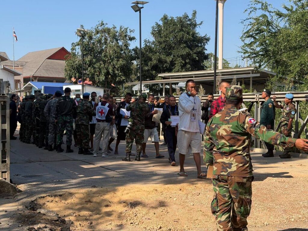 តាមរយៈសេចក្ដីប្រកាសព័ត៌មាន លោកស្រី ឧត្តមសេនីយ៍ឯក ម៉ាលី សុជាតា អ្នកនាំពាក្យក្រសួងការពារជាតិ នៃព្រះរាជាណាចក្រកម្ពុជា សូមជម្រាបជូនសាធារណជន អ្នកសារព័ត៌មានជាតិ និងអន្តរជាតិមេត្តាជ្រាបថា នៅច្រកទ្វារព្រំដែនអន្តរជាតិព្រំ ខេត្តប៉ៃលិន វេលាម៉ោង ១០:០០ នាទីព្រឹក ថ្ងៃទី៣១ ខែធ្នូ ឆ្នាំ២០២៥នេះ យោធិនកម្ពុជាទាំង ១៨រូប ដែលបានស្ថិតក្រោមការឃុំគ្រង របស់ភាគីថៃអស់រយៈពេល ១៥៥ថ្ងៃមកហើយ ត្រូវបានដោះលែង និងបញ្ជូនត្រឡប់មកមាតុប្រទេសវិញ ដោយសុខសុវត្ថិភាព។