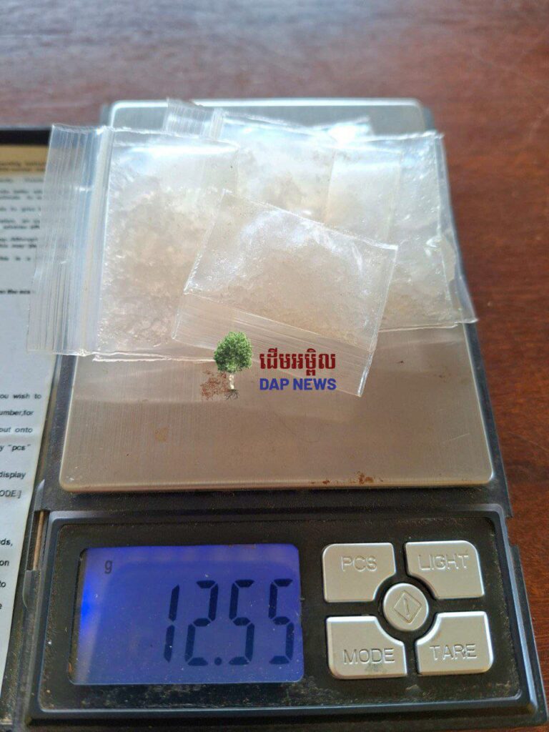 វត្ថុតាងដកហូតរួមមាន៖ ក្រាមពណ៌សថ្លា គ្រឿងញៀនប្រភេទមេតំហ្វេតាមីន(ម៉ាទឹកកក) ចំនួន១០កញ្ចប់ (៧កញ្ចប់ធំល្មម ,៣កញ្ចប់តូច) ទម្ងន់ ១២.៥៨ ក្រាម (ថ្លឹងទាំងសំបកថង់)ម៉ូតូចំនួន ០៤គ្រឿង (ម៉ាក yamaha ចំនួន០១គ្រឿង,ម៉ាក wave ចំនួន ០២គ្រឿង,ម៉ាក exiter ចំនួន០១គ្រឿង លោហៈធាតុពណ៌លឿង ខ្សែកមានបន្តោង ចំនួន០២ខ្សែ (កាឡៃ) ទូរស័ព្ទចំនួន០៨គ្រឿង(ម៉ាក iphone7 ចំនួន ០១គ្រឿង,ម៉ាកOPPO ចំនួន០៤គ្រឿង,ម៉ាក VIVO ចំនួន ០១គ្រឿង,ម៉ាក Realme ចំនួន០១គ្រឿង ,ម៉ាក infinix ចំនួន០១គ្រឿង) ថងវេចខ្ជប់ និងឧបករណ៍សម្រាប់ជក់គ្រឿងញៀនមួយចំនួន។