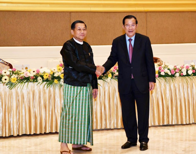 ភ្នំពេញ ៖ សម្តេចតេជោ ហ៊ុន សែន ប្រធានព្រឹទ្ធសភាកម្ពុជា និងគណបក្សប្រជាជនកម្ពុជា បានប្តេជ្ញាចិត្តយ៉ាងមុតមាំថា នឹងបន្តការធ្វើការងារ ជាមួយនាយឧត្តមសេនីយ៍ មីន អោងឡាំង ដើម្បីបង្កើនចំណងមិត្តភាពទ្វេភាគីរវាងប្រទេសកម្ពុជា និងមីយ៉ាន់ម៉ា ។