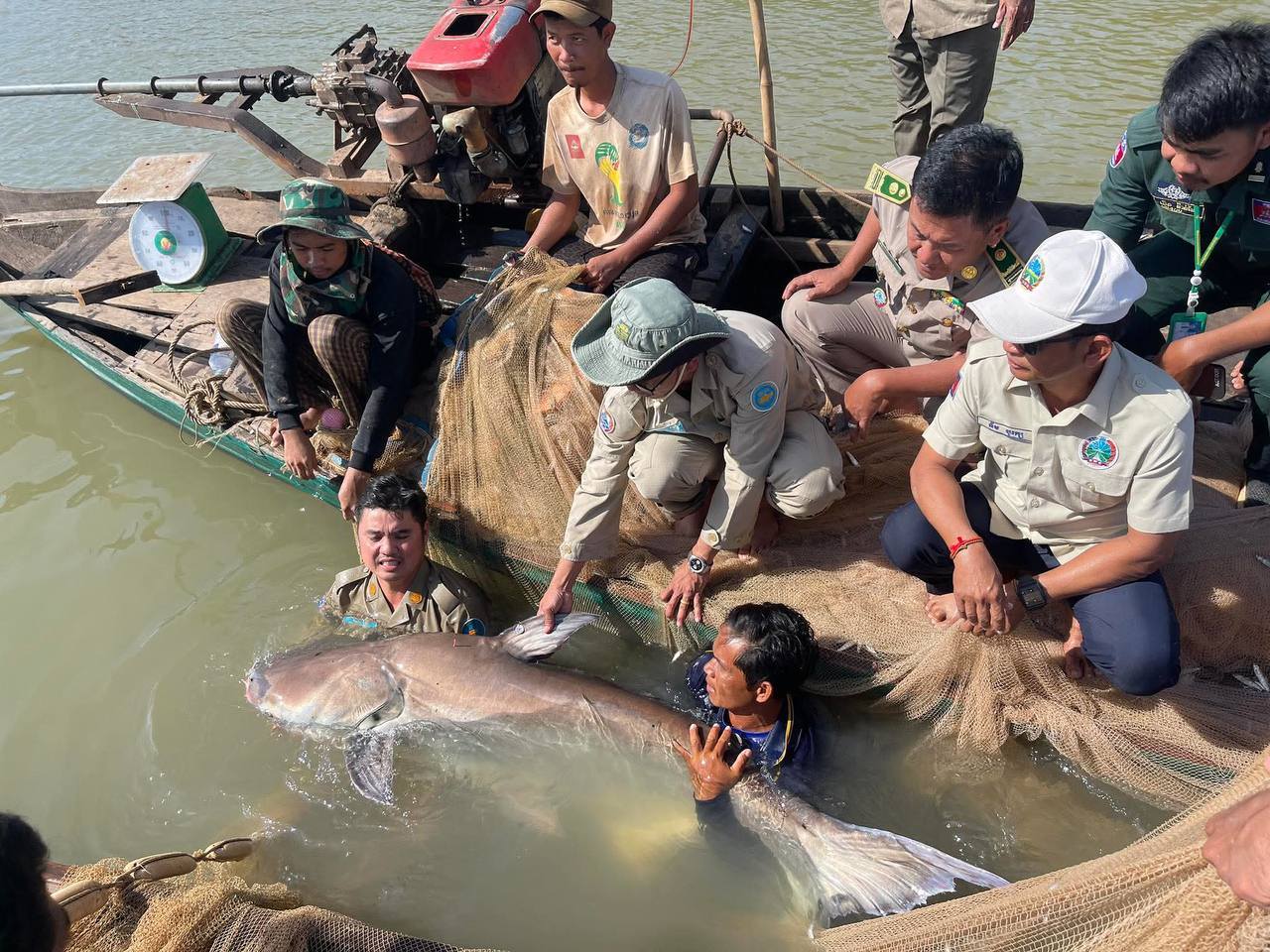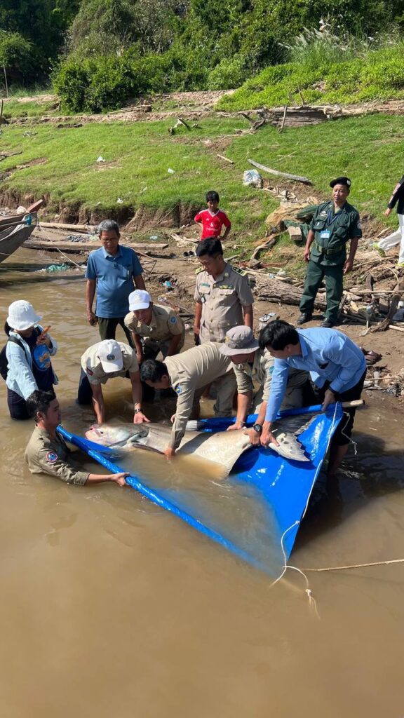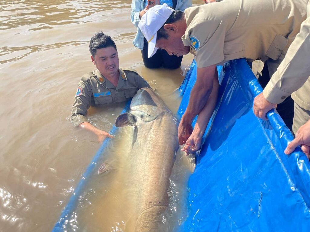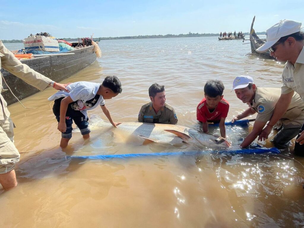 ត្រីរាជ ទម្ងន់ ៦៣គីឡូក្រាម ត្រូវបានរដ្ឋបាលខណ្ឌជលផលកំពង់ចាម លែងចូលទន្លេវិញ ក្រោយទទួលបានពីប្រជានេសាទ
