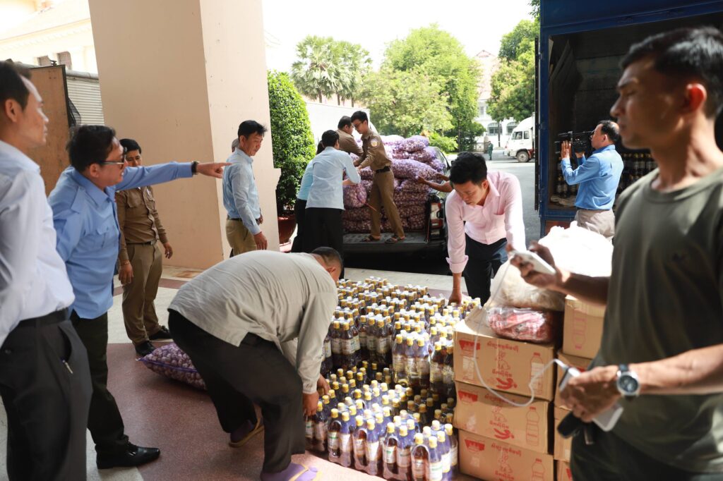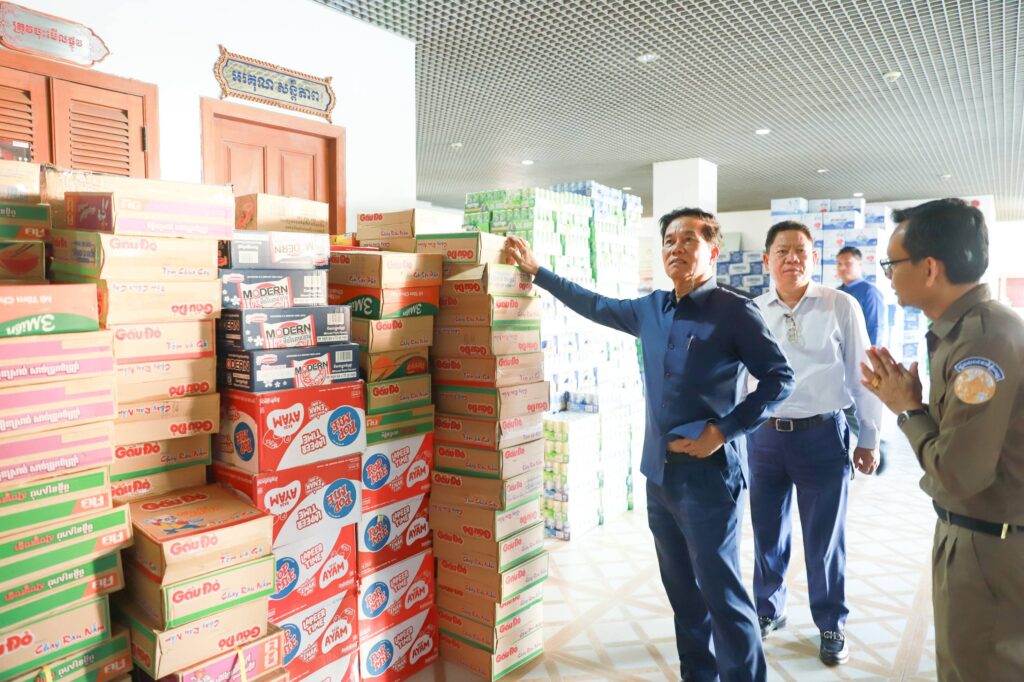 ភ្នំពេញ៖ លោក ឃួង ស្រេង អភិបាលរាជធានីភ្នំពេញ នារសៀលថ្ងៃទី៥ ខែមករា ឆ្នាំ២០២៦នេះ បានអញ្ជើញ ពិនិត្យមើលទីតាំង ប្រគល់និងទទួលអំណោយ ព្រមទាំងពិនិត្យអំណោយដែលសប្បុរសជន បានប្រគល់ជូនរដ្ឋបាលរាជធានីភ្នំពេញ ដើម្បីបែងចែកជូនដល់វីរកងទ័ពជួរមុខ និង ជនភៀសសឹក។