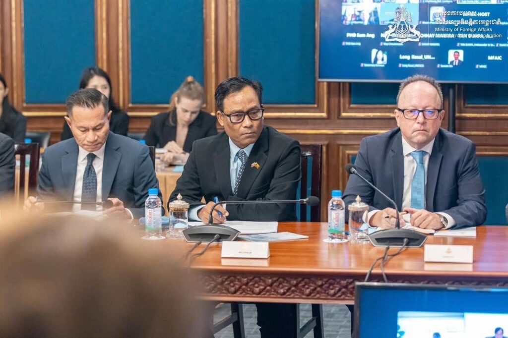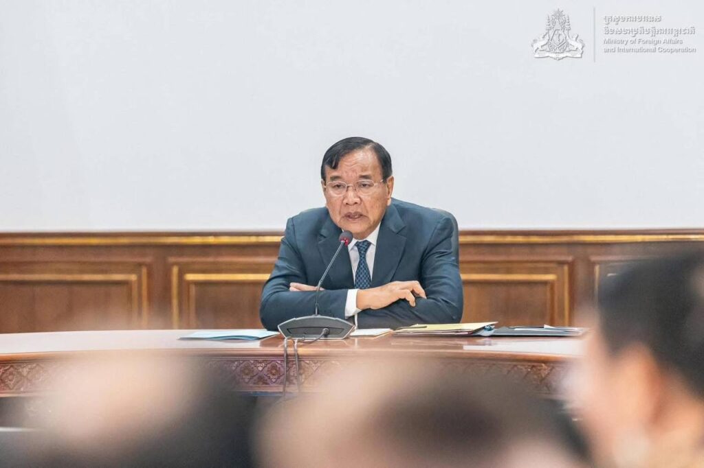 ក្នុងបទបង្ហាញស្តីពីការវិវត្តន៍ថ្មីៗ នៃស្ថានភាពព្រំដែនកម្ពុជា-ថៃ ជូនប្រធានបេសកកម្មការទូត និងតំណាងអង្គការ អន្តរជាតិនានា ក្នុងរាជធានីភ្នំពេញចំនួន៣៣ ស្ថានតំណាង និងមានចំនួនសរុប៥៥ រូប នៅរសៀលថ្ងៃទី៦ ខែមករា ឆ្នាំ២០២៦ លោក ប្រាក់ សុខ បានជម្រាបជូនពីលទ្ធផលសំខាន់ៗ នៃកិច្ចប្រជុំពិសេសរដ្ឋមន្ត្រីការបរទេសអាស៊ាន នៅទីក្រុងគូឡាឡាំពួ ថ្ងៃទី២២ ខែធ្នូ ឆ្នាំ២០២៥ កិច្ចប្រជុំពិសេសលើកទី៣ នៃគណៈកម្មាធិការព្រំដែនទូទៅ (GBC) ថ្ងៃទី២៧ ខែធ្នូ ឆ្នាំ២០២៥ និងកិច្ចប្រជុំរដ្ឋមន្រ្តីការបរទេសត្រីភាគីកម្ពុជា-ថៃ-ចិន នៅខេត្តយូណាន ប្រទេសចិន ថ្ងៃទី២៩ ខែធ្នូ ឆ្នាំ២០២៥ ដើម្បីជំរុញការអនុវត្តបទឈប់បាញ់ ឱ្យបានពេញលេញ និងមានប្រសិទ្ធភាព។