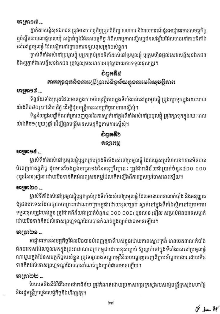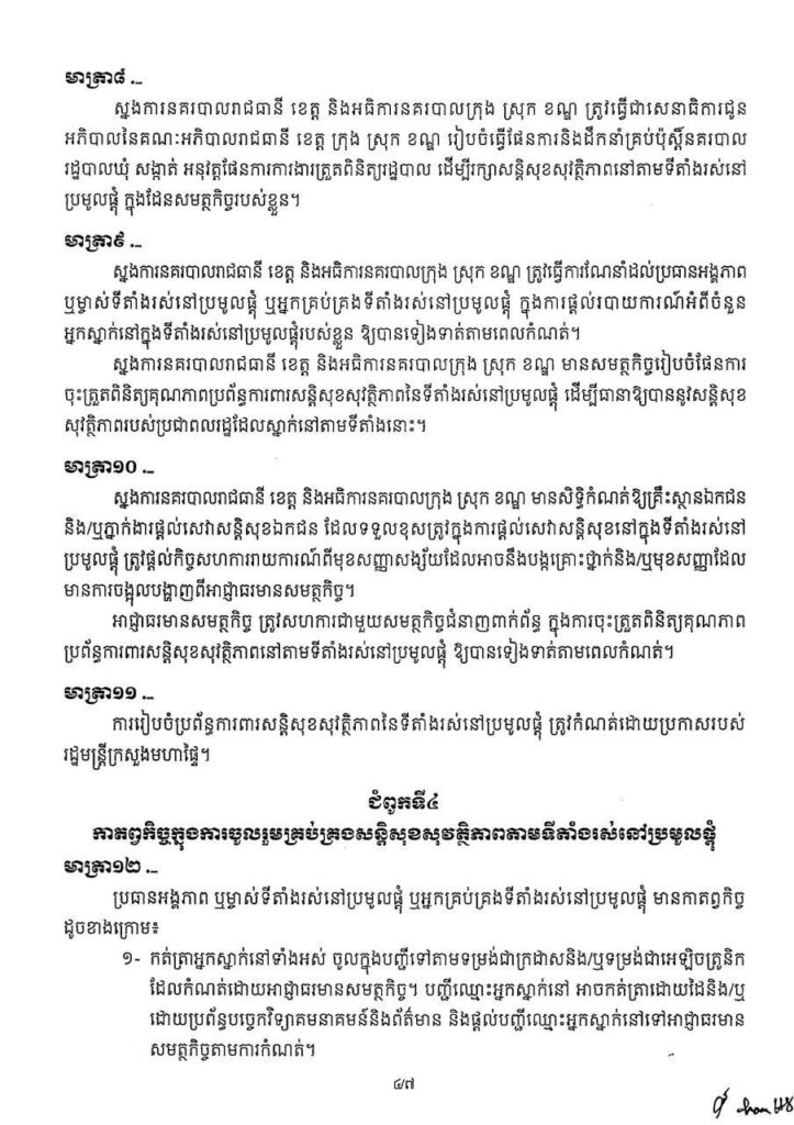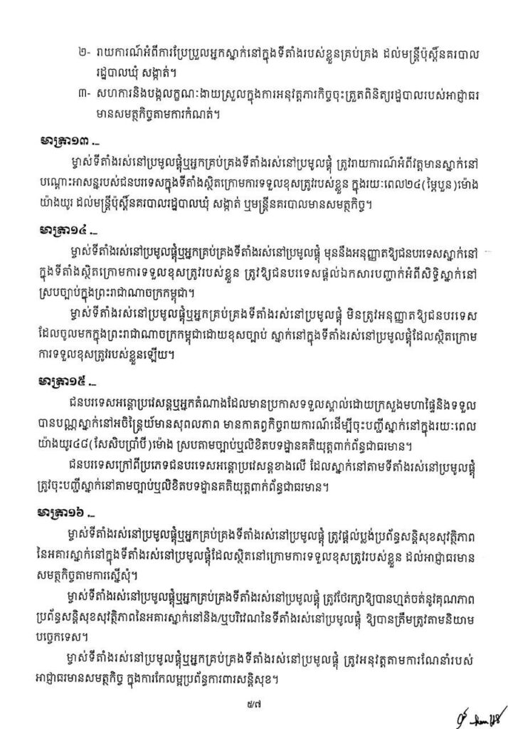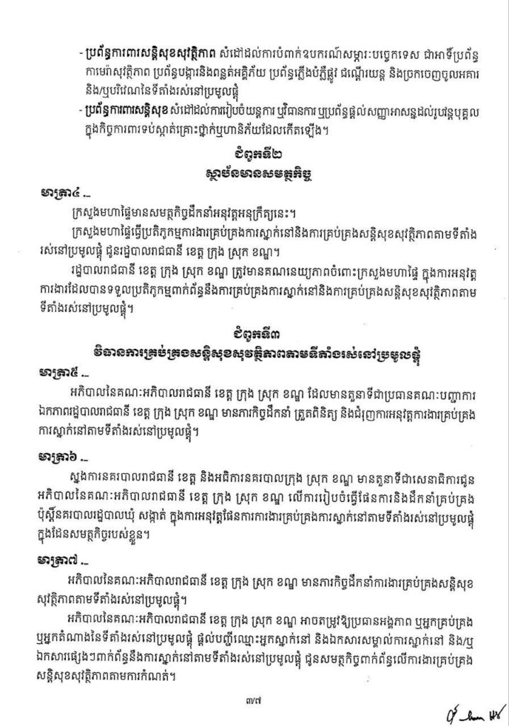 រាជរដ្ឋាភិបាល ចេញអនុក្រឹត្យ ស្ដីពី ការគ្រប់គ្រងសន្ដិសុខសុវត្ថិភាព តាមទីតាំងរស់នៅប្រមូលផ្ដុំ