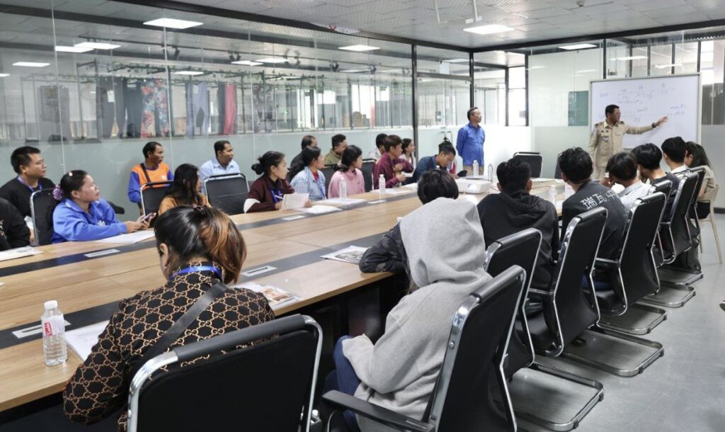 អតីតពលករមកពីប្រទេសថៃ ទទួលបានការបណ្តុះបណ្តាលជំនាញត្រៀមចូលធ្វើការងារនៅរោងចក្រ T.S Sport ខេត្តកំពង់ស្ពឺ