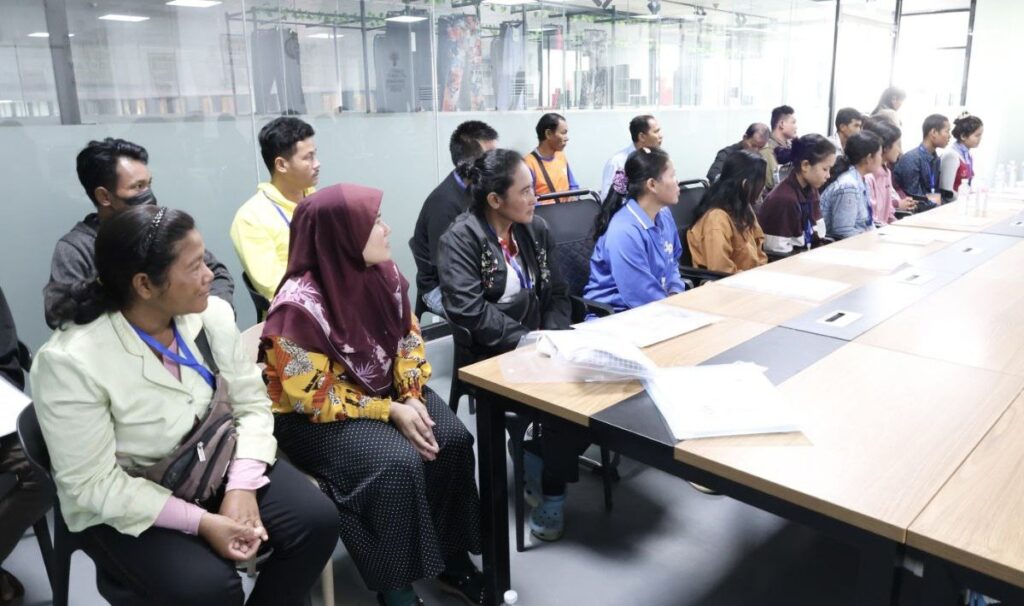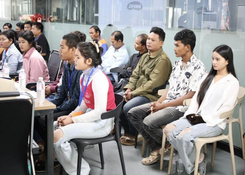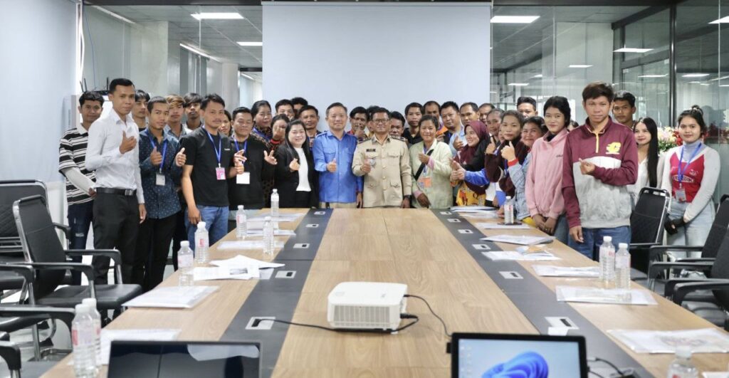កំពង់ស្ពឺ៖ បងប្អូនអតីតពលករមកពីប្រទេសថៃ ទទួលបានការបណ្តុះបណ្តាលត្រៀមចូលទីផ្សារការងារ តាមរយៈគម្រោងមូលនិធិអភិវឌ្ឍន៍ជំនាញ ដែលរៀបចំដោយក្រសួងសេដ្ឋកិច្ច និងហិរញ្ញវត្ថុ និងក្រសួងការងារ និងបណ្តុះបណ្តាលវិជ្ជាជីវៈ សហការជាមួយ រោងចក្រ T.S Sport ស្ថិតក្នុងភូមិឯកភាព ឃុំខ្ទុំក្រាំង ស្រុកសំរោងទង ខេត្តកំពង់ស្ពឺ កាលពីព្រឹកថ្ងៃទី១១ ខែមករា ឆ្នាំ២០២៦។