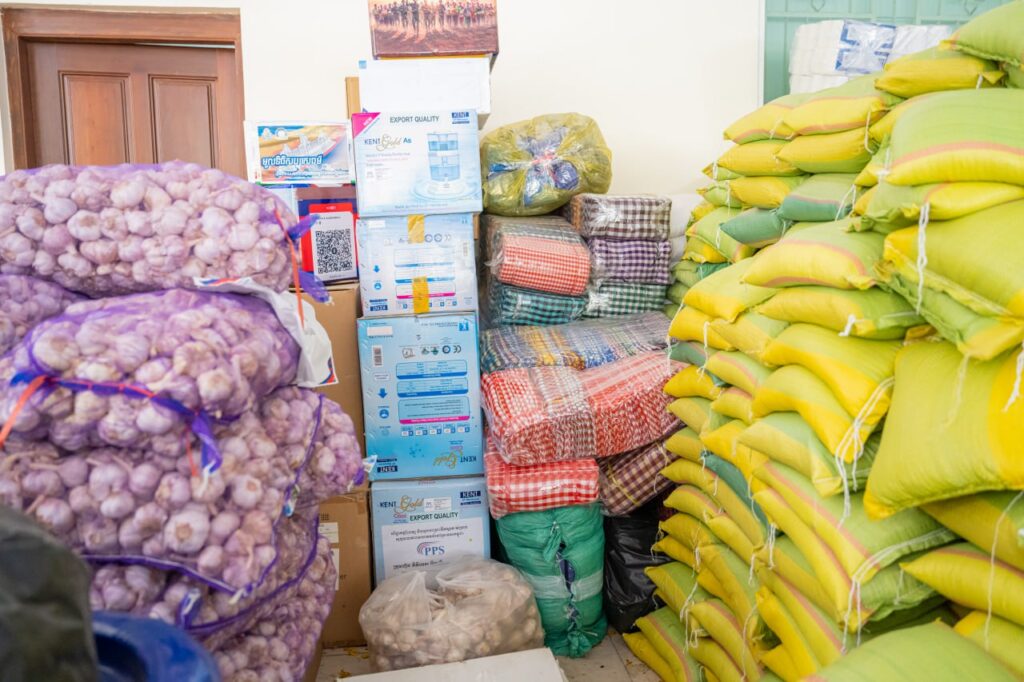 គ្រឿងឧបភោគបរិភោគ ដែលប្រគល់ជូនរួមមាន៖ ១. អង្គ ចំនួន ៥តោន, ២. ទឹកបរិសុទ្ធ 600ml ចំនួន ១០០កេស, ៣. ភេសជ្ជ ចំនួន ២៣០កេស, ៤. ធុងដាក់ទឹក ចំនួន ២៧០ធុង, ៥. ត្រីខ ចំនួន ១៥កេស, ៦. ស្កស 250g ចំនួន ១០កញ្ចប់, ៧. បីចេង 250g ចំនួន ១០កញ្ចប់, ៨. ម្សៅស៊ុប 200g ចំនួន ១០កញ្ចប់, ៩. ទឹកត្រី ចំនួន ៣យួរ, ១០. ទឹកស៊ីអ៊ីវ ចំនួន ៤យួរ, ១១. អំបុក ចំនួន ២១៥កេស, ១២. ប្រេងឆា ចំនួន ៤កេស, ១៣. មីជាតិ/មីខ្លាឃ្មុំ/គុយទាវ ចំនួន ១៣៩កេស, ១៤. សៀងផ្អែម ចំនួន ២យួរ, ១៥. ឆៃប៉ូវចំនួន ៥គីឡូ, ១៦. ខ្ទឹមស ចំនួន ១៥បាវ, ១៧. ឃិតទាហានចំនួន ៥០ឃីត, ១៨. យឺតកណ្តាល ចំនួន ១៥ឃីត, ១៩. សំឡីអនាម័យស្ត្រី ចំនួន ៥កេស, ២០. ខោអាវចម្រុះ ៥៤កេស, ៧ថង់ធំ និង ៥កញ្ចប់តូច, ២១. ទឹកដោះគោ ចំនួន ១២កេស, ២២. សម្ភារៈសិក្សាក្មេង ចំនួន ១កេស និងសៀវភៅកូនក្មេង១៥០ក្បាល, ២៣.ឧបករណ៍ក្មេងលេង ចំនួន ២ថង់, ២៤. នំ/ស្តគ្រាប់/ចាហួយ ចំនួន ១០កញ្ចប់ ព្រមទាំងសម្ភារៈចាំបាច់មួយចំនួនទៀត គឺសម្រាប់យកទៅឧបត្ថម្ភគាំទ្រដល់វីរកងទ័ពជួរមុខដែលកំពុងឈរជើងយ៉ាងរឹងមាំក្នុងការការពារបូរណភាពទឹកដីនៃព្រះរាជាណាចក្រកម្ពុជា ព្រមទាំងគ្រួសារកងទ័ព និងជនភៀសសឹកកម្ពុជា ដែលកំពុងរស់នៅបណ្តោះអាសន្ននៅតំបន់មានសុវត្ថិភាពក្នុងភូមិសាស្ដ្រខេត្តឧត្តរមាន៕