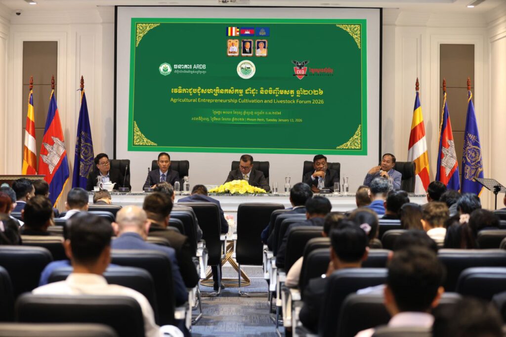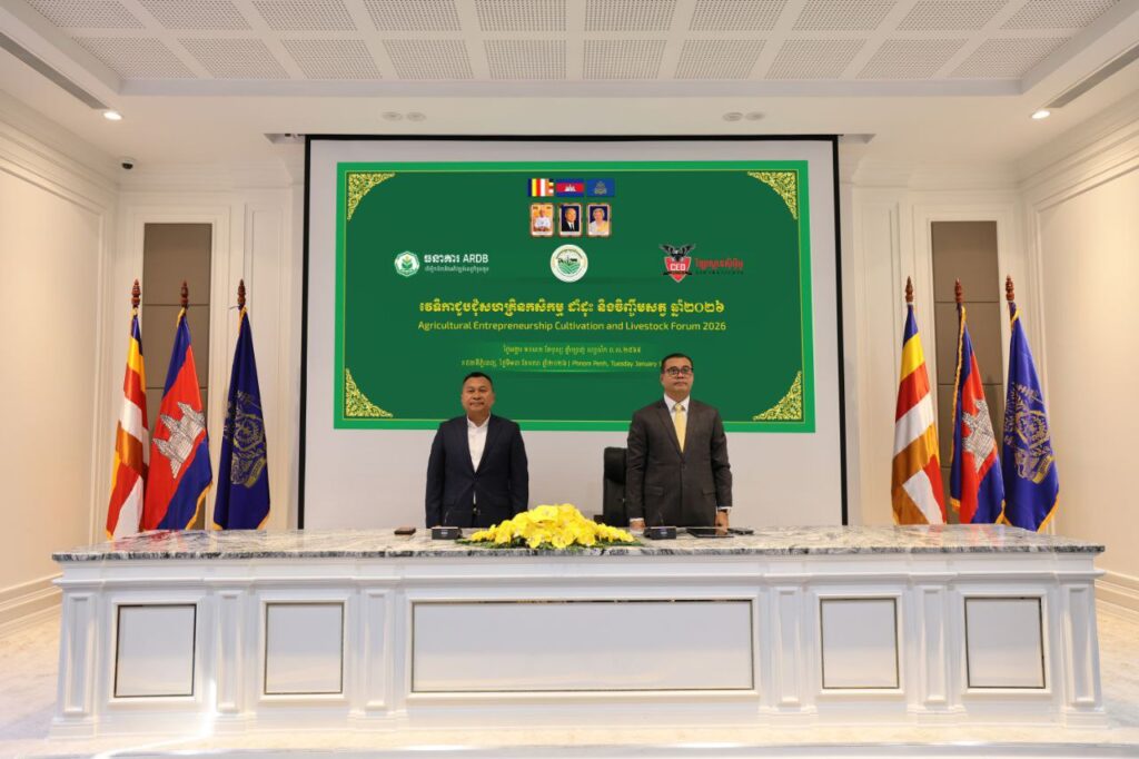 ភ្នំពេញ៖ ធនាគារអភិវឌ្ឍន៍ជនបទ និងកសិកម្ម (ARDB) សមាគមបណ្តាញកសិករតេជោ និងវិទ្យាស្ថានស៊ីអ៊ីអូ បានសហការរៀបចំវេទិកាជួបជុំសហគ្រិនកសិកម្ម ដាំដុះ និងចិញ្ចឹមសត្វ ឆ្នាំ២០២៦ ដែលមានការអញ្ជើញចូលរួមជាអធិបតីភាពដ៏ខ្ពង់ខ្ពស់របស់ លោកបណ្ឌិត កៅ ថាច ប្រតិភូរាជរដ្ឋាភិបាលទទួលបន្ទុកជាអគ្គនាយកធនាគារ អភិវឌ្ឍន៍ជនបទនិងកសិកម្ម និងលោកបណ្ឌិត អោម សេងបូរ៉ា ស្ថាបនិកវិទ្យាស្ថានស៊ីអ៊ីអូ។