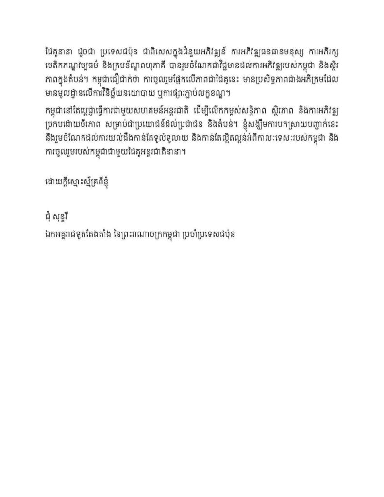 ឯកអគ្គរដ្ឋទូតកម្ពុជាប្រចាំនៅជប៉ុន បំភ្លឺទៅសារព័ត៌មាន The Japan Times