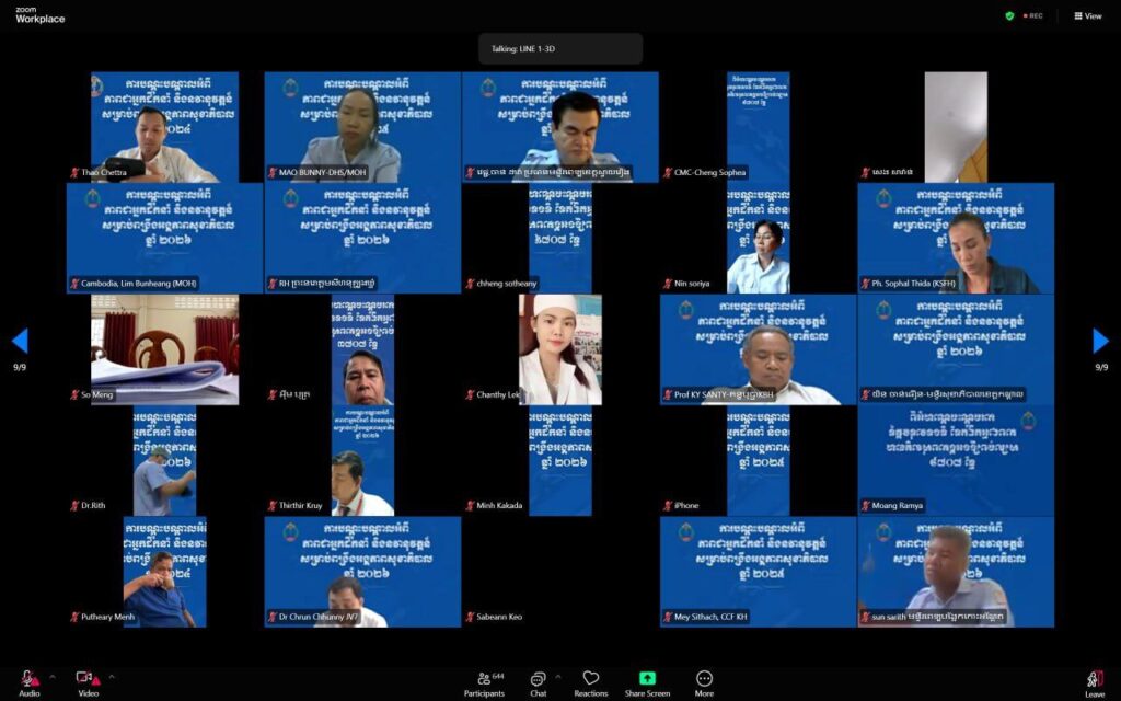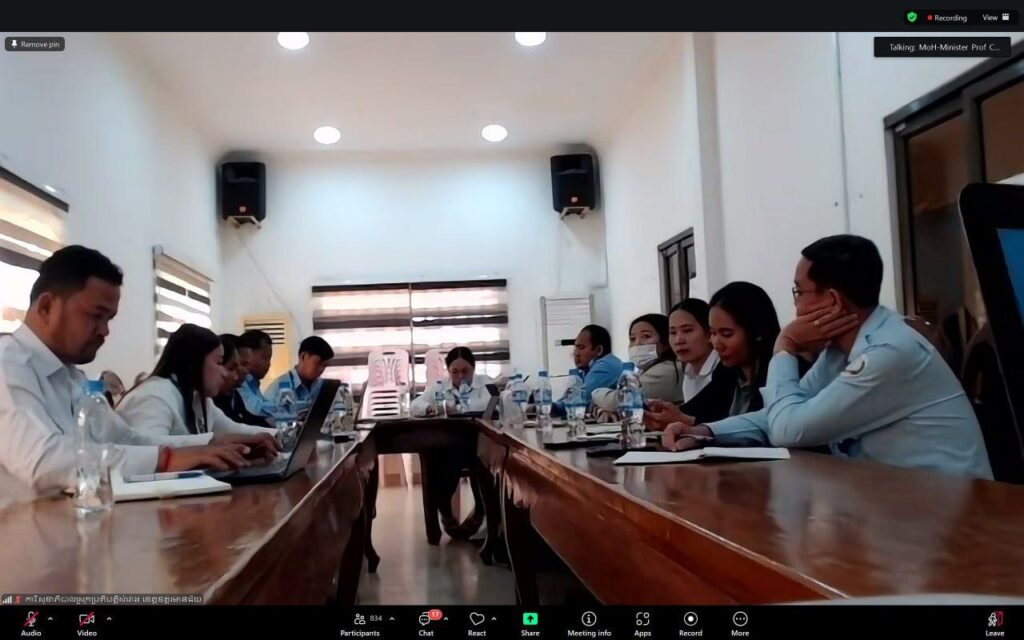 ភ្នំពេញ ៖ ក្នុងឱកាសដឹកនាំវគ្គភាពអ្នកដឹកនាំ និងនវានុវត្តន៍ ដែលមានមន្រ្តីសុខាភិបាលគ្រប់ឋានានុក្រម ក្រោមឱវាទក្រសួងសុខាភិបាល ចូលរួមតាមប្រព័ន្ធវីដេអូសន្និសីទ (Zoom) សរុបចំនួន ៣ ១៣៨នាក់ លោកសាស្ត្រាចារ្យ ឈាង រ៉ា រដ្ឋមន្រ្តីក្រសួងសុខាភិបាល បានជំរុញឱ្យបុគ្គលិកសុខាភិបាលម្នាក់ៗត្រូវតាំងចិត្ត ធ្វើការឱ្យក្លាយទៅជាវីរជននៅក្នុងមុខងារ និងភារកិច្ចរបស់ខ្លួន។