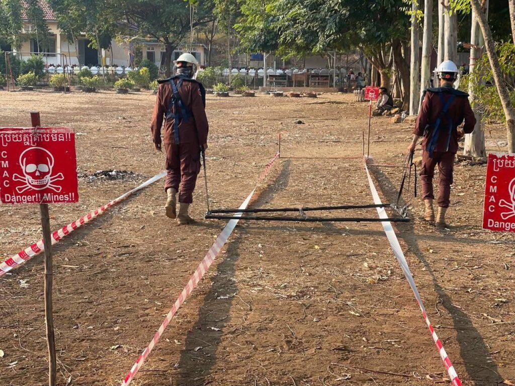 ភ្នំពេញ៖ លោក ហេង រតនា អគ្គនាយកស៊ីម៉ាក់ បានឱ្យដឹងថានៅទី១៦ ខែមករា ឆ្នាំ២០២៦ កម្លាំងអង្គភាពCMAC ទិសខេត្តពោធិ៍សាត់ បាត់ដំបង បន្ទាយមានជ័យ ឧត្តរមានជ័យ និងខេត្តព្រះវិហារ បានបន្តបោសសម្អាតសំណល់ យុទ្ធភណ្ឌសង្គ្រាម នៅតាមសាលារៀន ទាំងឡាយ ដែលរងផលប៉ះពាល់ ដោយសារសំណល់គ្រាប់ មិនទាន់ផ្ទុះដោយសារសង្គ្រាមឈ្លានពានរបស់សៀម!។