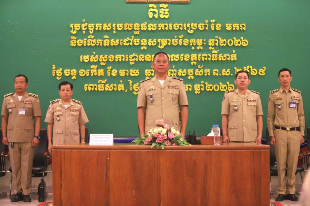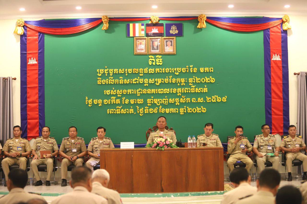 ពោធិ៍សាត់៖ នៅព្រឹកថ្ងៃចន្ទទី១៩ ខែមករា ឆ្នាំ២០២៦ នៅសាលប្រជុំស្នងការដ្ឋាននគរបាលខេត្តពោធិ៍សាត់ បានបើកកិច្ចប្រជុំបូកសរុបលទ្ធផលការងារប្រចាំខែមករា និងលើកទិសដៅការងារបន្តសម្រាប់ខែកុម្ភៈ ឆ្នាំ២០២៦ ក្រោមអធិបតីភាពរបស់ លោកឧត្តមសេនីយ៍ទោ ស ថេង ស្នងការនគរបាលខេត្តពោធិ៍សាត់ ។