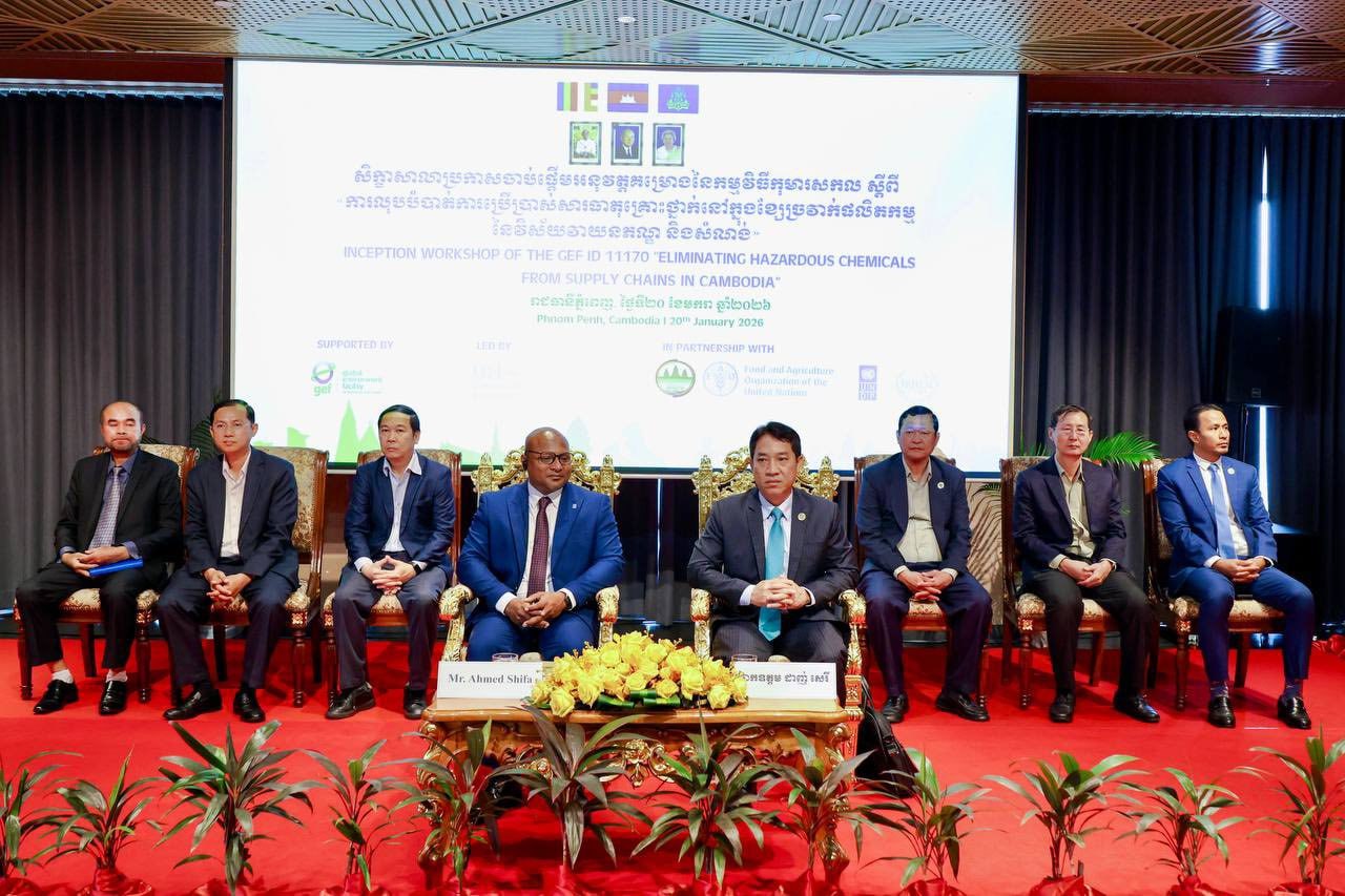 ភ្នំពេញ ៖ ក្រសួងបរិស្ថាន ក្រោមកិច្ចសហការ ជាមួយកម្មវិធីបរិស្ថានសហប្រជាជាតិ(UNEP) និងកម្មវិធីអភិវឌ្ឍន៍ សហប្រជាជាតិប្រចាំកម្ពុជា (UNDP Cambodia) បានរៀបចំសិក្ខាសាលាប្រកាសចាប់ ផ្តើមអនុវត្តគម្រោងពេញលេញ នៃកម្មវិធីកុមារសកល ស្តីពី «ការ លុបបំបាត់ការប្រើប្រាស់សារធាតុគ្រោះថ្នាក់ នៅក្នុងខ្សែចង្វាក់ផលិតកម្ម ក្នុងវិស័យវាយនភណ្ឌ និងសំណង់ » ក្រោមជំនួយហិរញ្ញវត្ថុ ពីមូលនិធិបរិស្ថានសកល (GEF)។