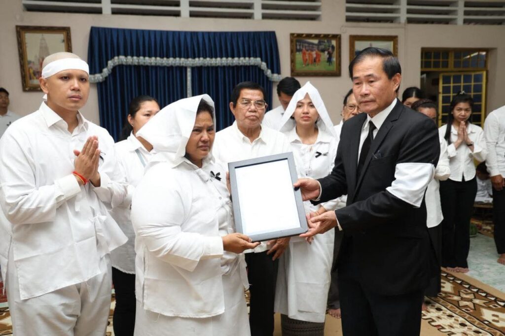 ក្នុងឱកាសប្រកបដោយសមានទុក្ខដ៏ក្រៀមក្រំនេះ យើងខ្ញុំសូមសម្តែងនូវការសោកស្តាយស្រណោះអាឡោះ អាល័យជាទីបំផុតជាមួយ លោកស្រី ព្រមទាំងក្រុមគ្រួសារ និងសូមសម្តែងនូវសេចក្តីសង្វែកប្រកបដោយអនិច្ចលក្ខណធម៌យ៉ាងជ្រាលជ្រៅបំផុត។