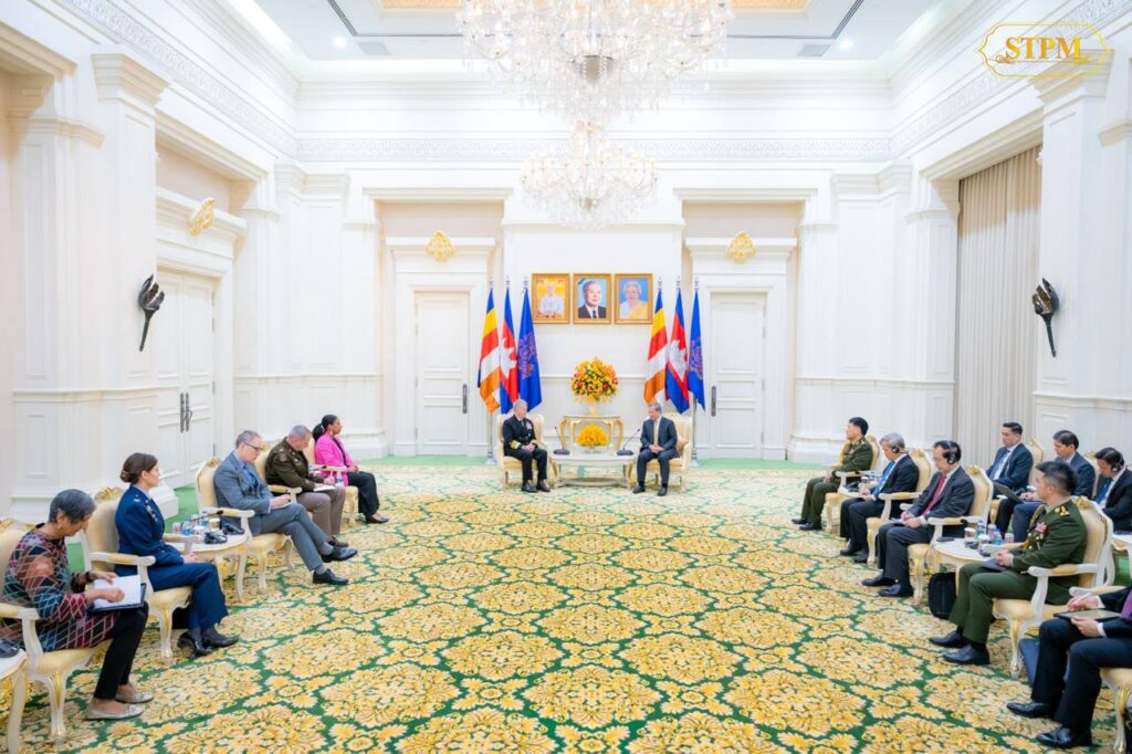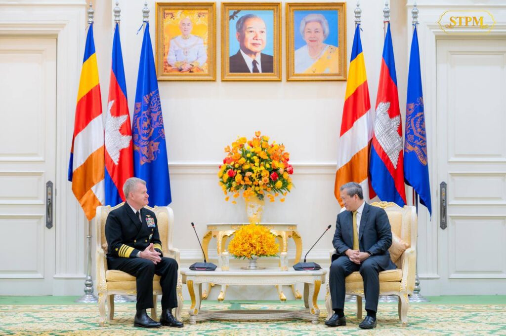 ភ្នំពេញ ៖ សម្តេចមហាបវរធិបតី ហ៊ុន ម៉ាណែត នាយករដ្ឋមន្ត្រី នៃព្រះរាជាណាចក្រកម្ពុជា បានអនុញ្ញាតឱ្យ នាយឧត្តមនាវី Samuel Paparo មេបញ្ជាការនៃបញ្ជាការដ្ឋានឥណ្ឌូ-ប៉ាស៊ីហ្វិក នៃសហរដ្ឋអាមេរិក ចូលជួបសម្តែងការគួរសម និងពិភាក្សាការងារ នៅវិមានសន្តិភាព នាព្រឹកថ្ងៃចន្ទ ទី២៦ ខែមករា ឆ្នាំ ២០២៦៕