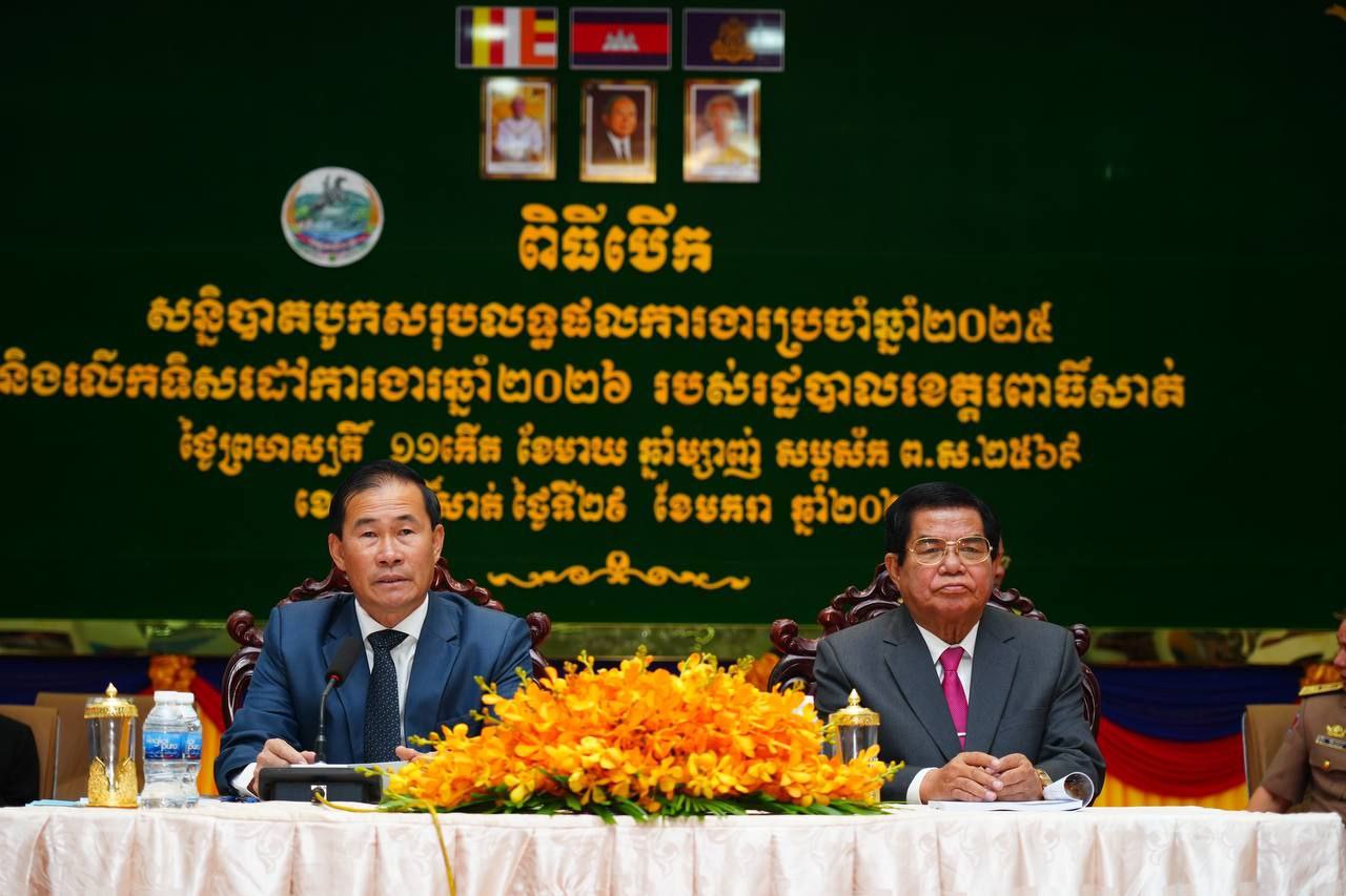 លោក ខូយ រីដា និង លោក ម៉ក់ រ៉ា អញ្ជើញជាអធិបតី ក្នុងពិធីបើកសន្និបាតបូកសរុបលទ្ធផលការងារប្រចាំឆ្នាំ២០២៥ និងលើកទិសដៅការងារបន្តសម្រាប់ឆ្នាំ២០២៦ របស់រដ្ឋបាលខេត្តពោធិ៍សាត់