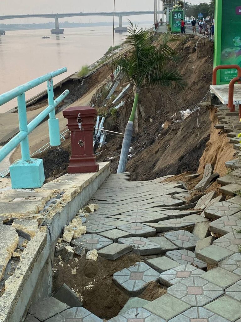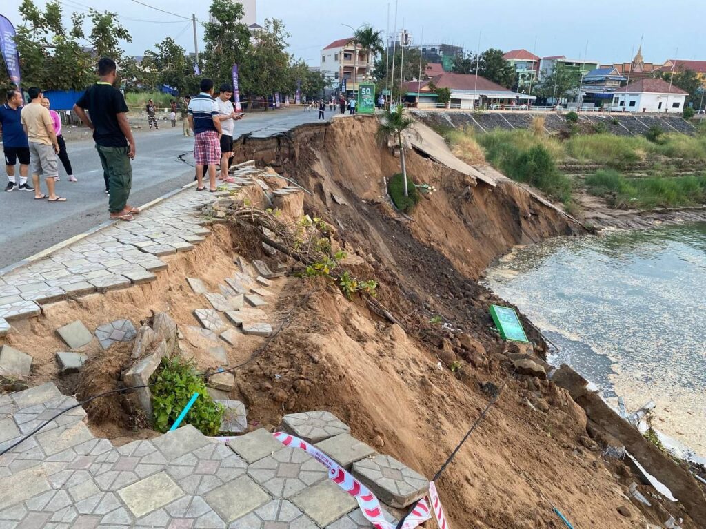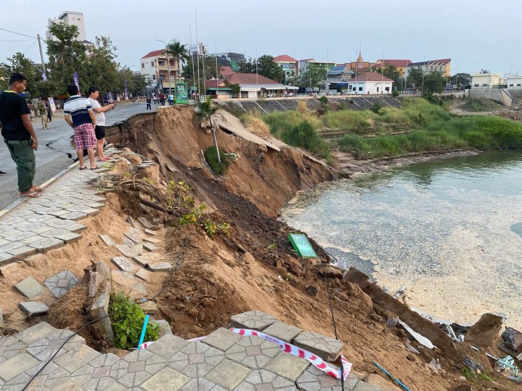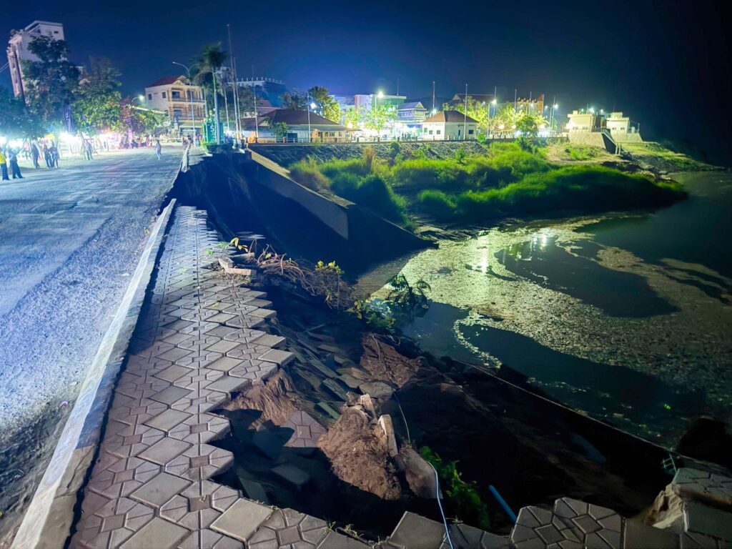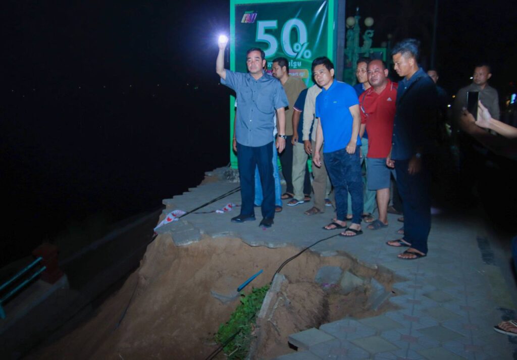 បាក់ស្រុតច្រាំងទន្លេ ក្នុងក្រុងកំពង់ចាម វេលាម៉ោង ១២យប់ អភិបាលខេត្តកំពង់ចាម ដឹកនាំក្រុមការងារចុះពិនិត្យ និងដាក់បម្រាម បញ្ចៀសគ្រោះថ្នាក់ ដល់ប្រជាពលរដ្ឋ