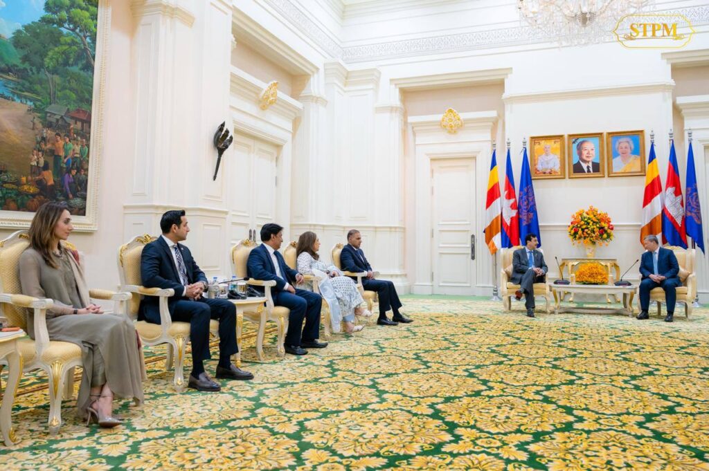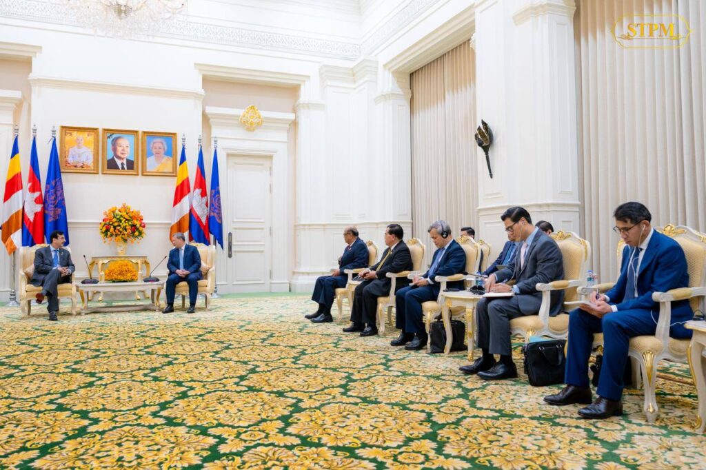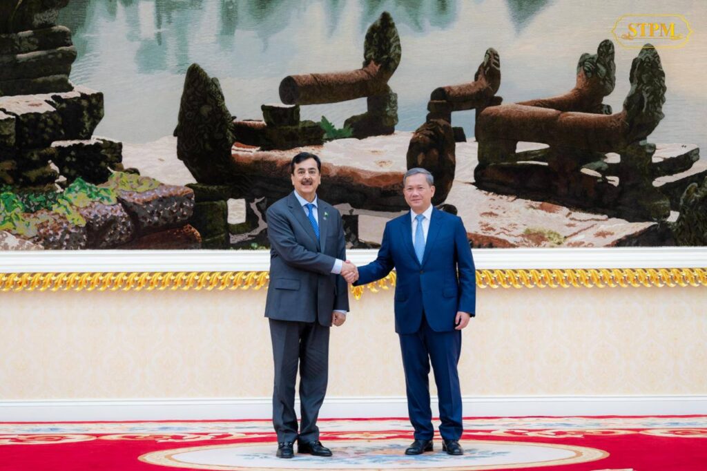 ភ្នំពេញ ៖ នារសៀលថ្ងៃទី០៣ ខែកុម្ភៈ ឆ្នាំ២០២៦, សម្តេចធិបតី ហ៊ុន ម៉ាណែត នាយករដ្ឋមន្រ្តី នៃកម្ពុជា បានទទួលជួបពិភាក្សាការងារជាមួយ លោក ស៊ីយ៉េដ យូសាហ្វ រ៉ាហ្សា ជីឡានី (H.E. Syed Yousaf Raza Gilani) ប្រធានព្រឹទ្ធសភាឥស្លាមប៉ាគីស្ថាន ខណៈភាគីទាំងពីរ ប្ដេជ្ញាពង្រឹង និងពង្រីកកិច្ចសហប្រតិបត្តិការទ្វេភាគីឱ្យកាន់តែខ្លាំងក្លាថែមទៀត។