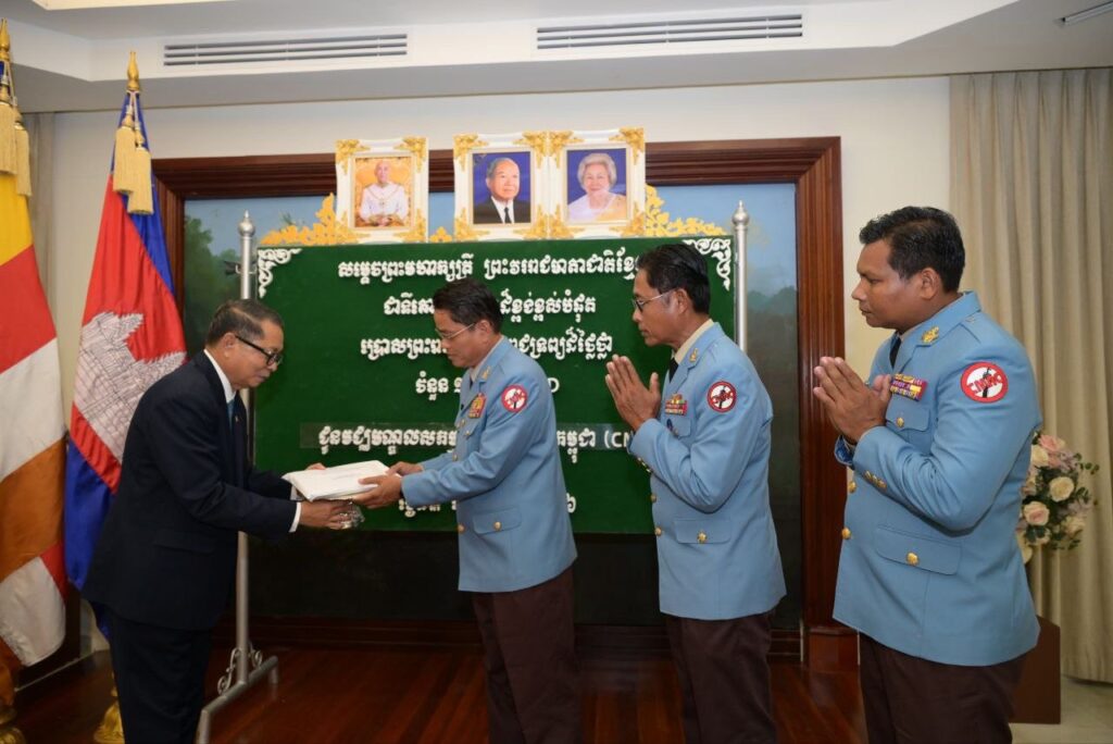 ការប្រោសព្រះរាជទានេះ តាមរយៈសម្តេចមហាមន្រ្តី គុយ សុផល ឧបនាយករដ្ឋមន្រ្តី រដ្ឋមន្រ្តីក្រសួងព្រះបរមរាជវាំង។