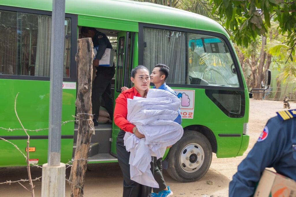 អង្ក២បាវ ,មី ២កេះ,ទឹកសុទ្ធ ២កេះ,ទឹកផ្លែឈើ ២កេះ,ទឹកស៉ីអ៉ីវ ២យួរ,ទឹកត្រី ២យួរ,ត្រីខ ២យួរ,ភួយចំនួន៤ និងខ្នើយចំនួន៤ថែមទៀតផង៕