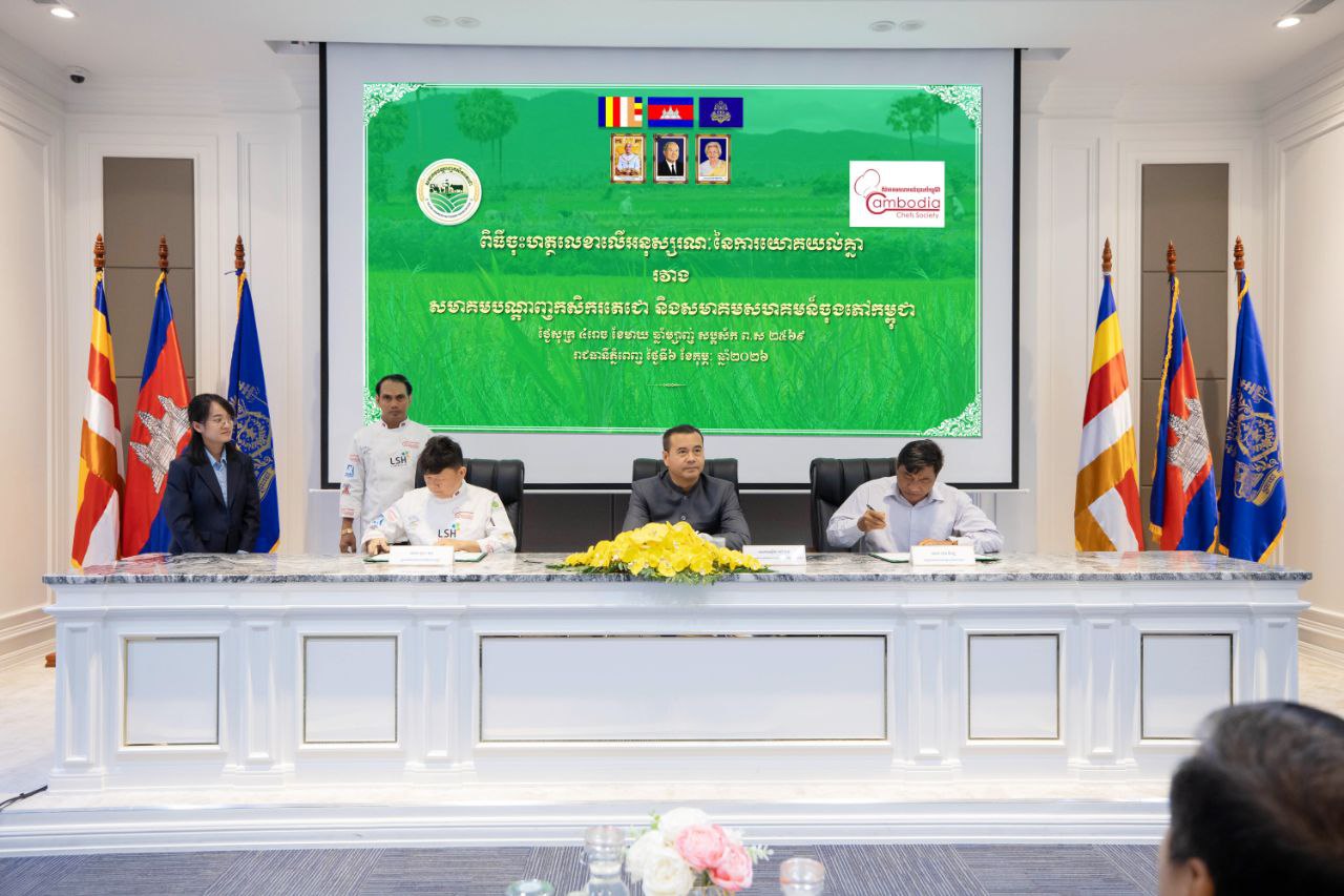 ឆ្លៀតក្នុងឱកាសនេះ លោកបណ្ឌិតប្រតិភូ ក៏បានផ្តល់កិត្តិយលអញ្ជើញចូលរួមជាសក្សីក្នុងពិធីចុះហត្ថលេខាលើអនុស្សរណៈនៃការយោគយល់គ្នា រវាងសមាគមបណ្តាញកសិករតេជោ និងសមាគមសហគមន៍ចុងភៅកម្ពុជា ដើម្បីជំរុញកិច្ចសហប្រតិបត្តិការរវាងសមាគមទាំងពីរផងដែរ៕