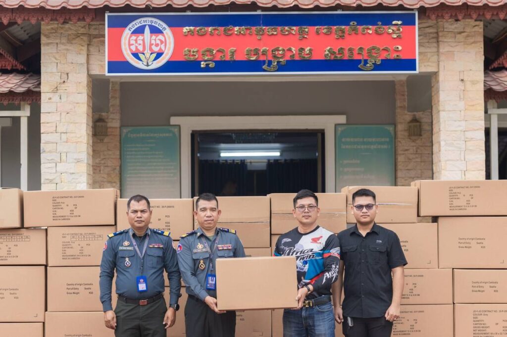 កំពង់ស្ពឺ​៖​​ នៅព្រឹកថ្ងៃទី៦ ខែកុម្ភៈ ឆ្នាំ២០២៦​នេះ​ លោកឧត្តមសេនីយ៍ត្រី ម៉េង ស្រ៊ុន​​ មេបញ្ជាការ​ កង​រាជអាវុធហត្ថខេត្តកំពង់ស្ពឺ  បានចាត់ក្រុមការងារកងរាជអាវុធហត្ថ​ខេត្ត​កំពង់ស្ពឺ​ ទទួលនូវការឧបត្ថម្ភ​ពី​សប្បុរសជន​ លោក​​ MARK BYRON HUANG នាយកក្រុមហ៊ុន អ៊ែដ្យាយ ស្វេថឺ (ខេមបូឌា) ខូ អិល ធី ឌី Agile Sweater(Cambodia) Co., LTD ប្រគល់នអាវរងារ២០០០អាវ​​ជូនដល់​ បញ្ជា​ការដ្ឋានកងរាជអាវុធហត្ថខេត្តកំពង់ស្ពឺ​​​ សម្រាប់​ប្រើប្រាស់​ជា​ប្រយោជន៍​ជាក់ស្តែង​ក្នុង​អង្គភាព​។