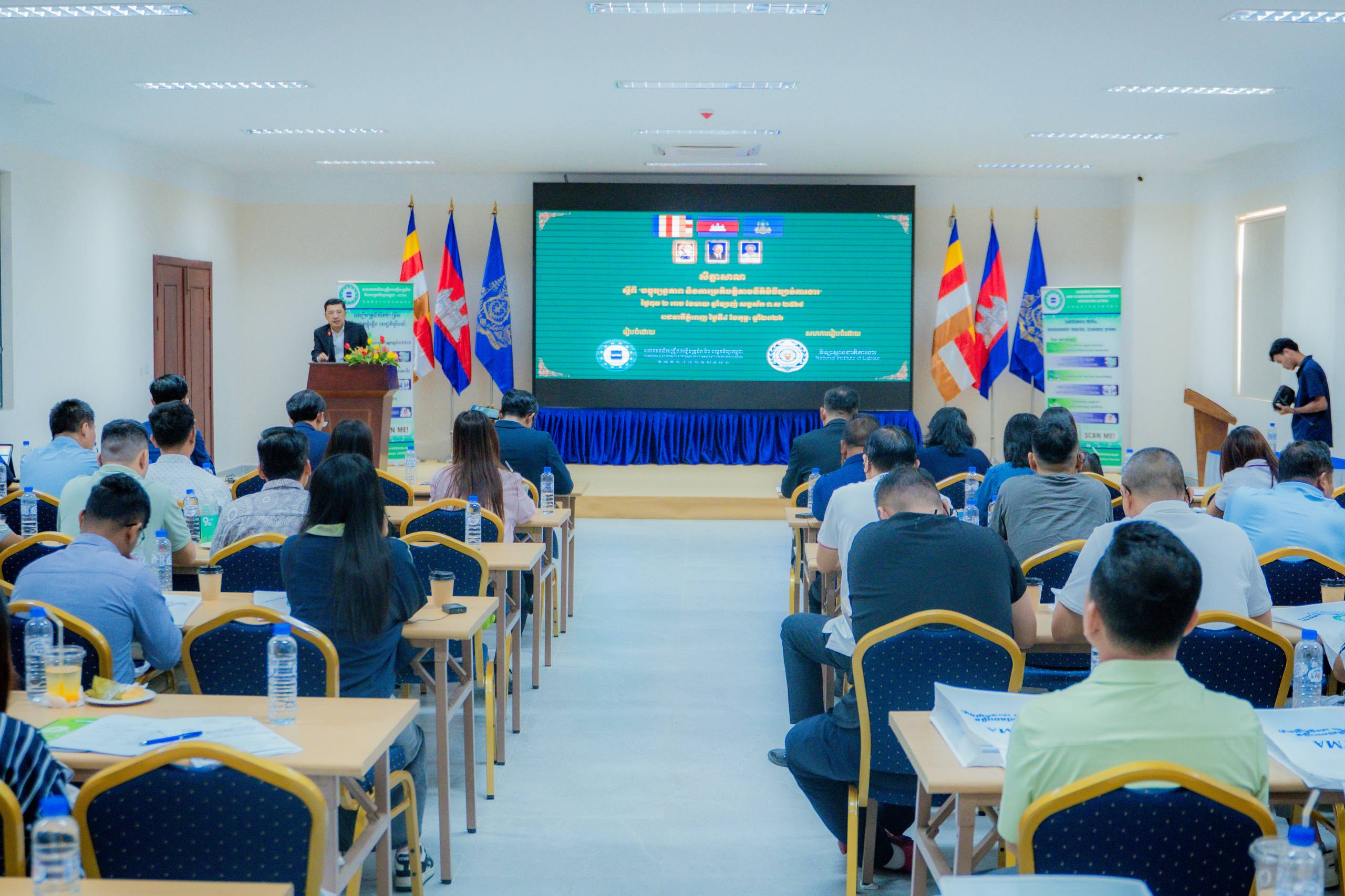 ភ្នំពេញ:វិទ្យាស្ថានជាតិការងារ បានសហការជាមួយសមាគមផលិតគ្រឿងអេឡិចត្រូនិក និងបច្ចេកវិទ្យាកម្ពុជា (CETMA) រៀបចំសិក្ខាសាលាស្តីពី “បច្ចុប្បន្នភាព និងការអនុវត្តបទប្បញ្ញត្តិច្បាប់ការងារ” កាលពីថ្ងៃទី៤ ខែកុម្ភៈ ឆ្នាំ២០២៦ នៅវិទ្យាស្ថានជាតិបណ្ដុះបណ្ដាលបច្ចេកទេស ដោយមានការចូលរូមពី ឧកញ៉ា អន ប៊ុនហាក់ អគ្គលេខាធិការសមាគម CETMA និងលោក ស៊ុន លីយៀន អនុប្រធានសមាគម CETMA ។